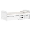 materiál masiv borovice, barevné provedení bílý / růžový lak praktické úložné prostory pod postelí (zásuvky a otevřená police) v ceně cena včetně roštu (dřevěný laťkový),...