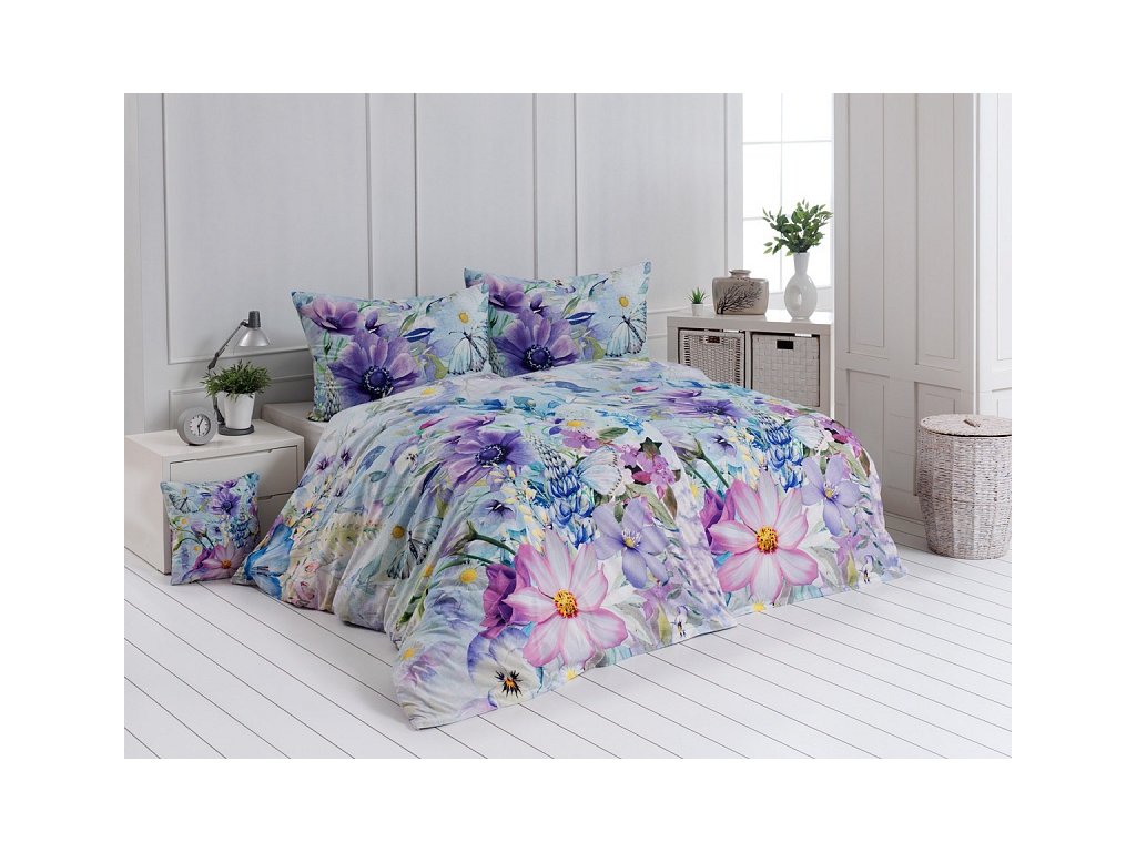 Aurelia Bavlna deluxe DIGITÁL 1x 140/220, 1x 70/90 - Kombinací akvarelové malby a fotoprvků vznikl poutavý květinový vzor povlečení Aurelia. Jemný bílomodrý podklad dává vyniknout květům v atraktivních fialových a růžových odstínech. Povlečení bavlna deluxe digitál je tištěno nejmodernějším digitálním tiskem, který zajišťuje vysoce precizní detail. Motiv povlečení je z obou stran stejný, zapínání usnadní komfortní zipový uzávěr. bonieDoplňkové parametry