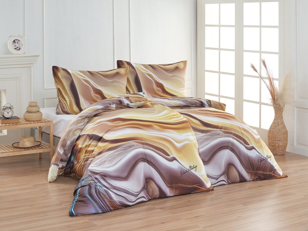 Blanka Matragi Aurum 1x 140/200, 1x 70/90 - Inspirujte se novou limitovanou edicí povlečení uznávané módní návrhářky Blanky Matragi. Elegantní, ale přesto velmi odvážné a promyšlené motivy vyzařují autorské inovační nápady a na první pohled zaujmou optickými iluzionistickými prvky. Povlečení obdržíte v luxusní dárkové krabičce. Za její nepoškozený stav ovšem nezodpovídáme. Povlečení Birth se stane skutečným klenotem ve vaší ložnici. Uměleckému vzoru vévodí azurová barva a její odstíny. Důmyslnou strukturu podtrhuje zlatá barva. Povlečení v provedení luxusního bavlněného mako saténu je tištěno nejmodernějším digitálním tiskem, který zajišťuje věrný detail přesně dle autorčina záměru.Povlečení je opatřeno podpisem Blanky Matragi - signatura nechybí na pokrývce, polštáři, ani na malém polštářku. Motiv z obou stran povlečení odpovídá fotografii. Zapínání usnadní komfortní zipový uzávěr.Doplňkové parametry