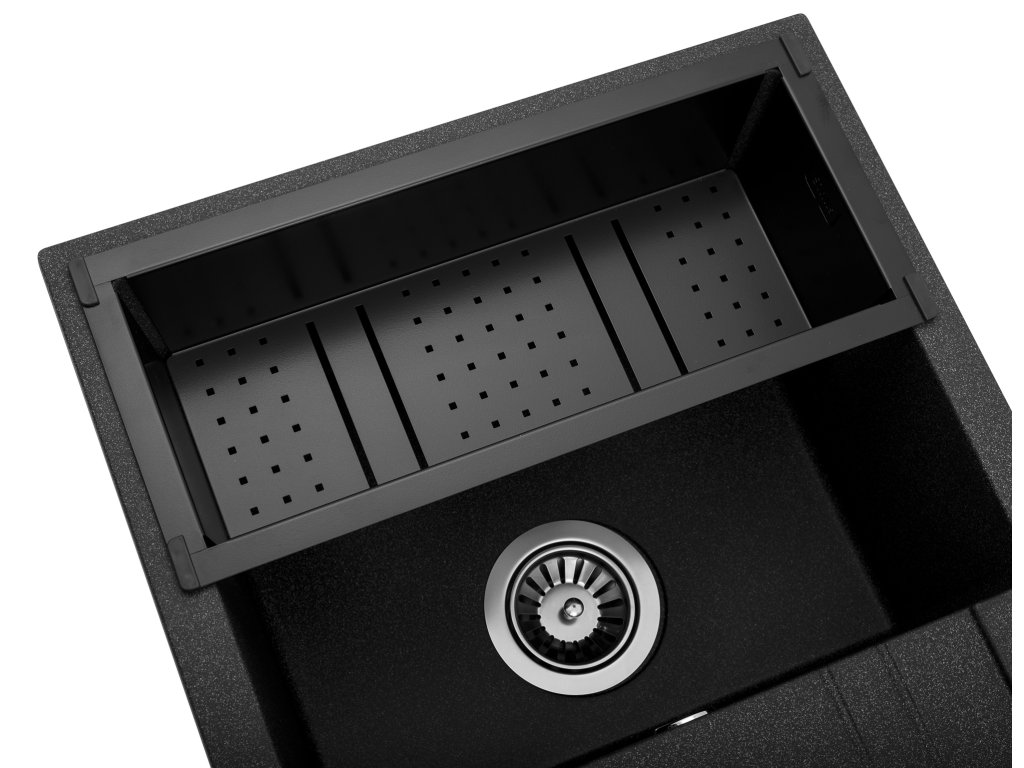 Cedník do dřezu - černý je ideálním doplňkem pro váš dřez, navržený tak, aby rozměrově perfektně padl do odpovídající modelové řady dřezů. Díky svému designu a barvě, které dokonale ladí s vybraným dřezem, vypadá Cedník do dřezu - černý jako přirozená součást vaší kuchyňské výbavy. Tento praktický a stylový cedník usnadňuje oplachování ovoce, zeleniny a dalších potravin, zatímco jeho konstrukce zajišťuje dlouhou životnost. Doplňte svůj dřez o prakrtický cedník a užijte si pohodlnější přípravu jídla s tímto elegantním doplňkem.