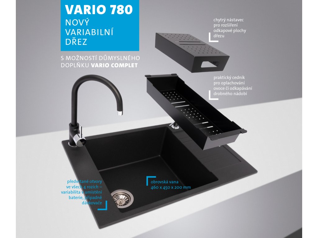 VARIO Complet - černý je ideálním doplňkem pro váš dřez, navržený tak, aby rozměrově perfektně padl do odpovídající modelové řady dřezů. Díky svému designu a barvě, které dokonale ladí s vybraným dřezem, vypadá VARIO Complet - černý jako přirozená součást vaší kuchyňské výbavy. Tento praktický a stylový cedník usnadňuje oplachování ovoce, zeleniny a dalších potravin, zatímco jeho konstrukce zajišťuje dlouhou životnost. Doplňte svůj dřez o prakrtický cedník a užijte si pohodlnější přípravu jídla s tímto elegantním doplňkem.