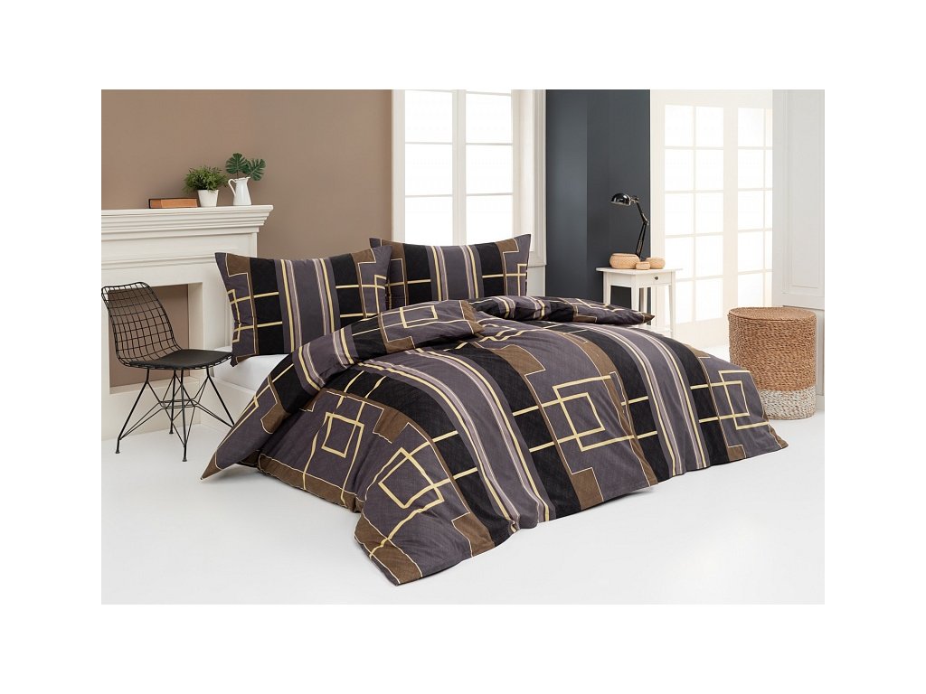 Denver Bavlna deluxe 1x 140/220, 1x 70/90 - Nechte svou ložnici zazářit nevídanou elegancí s bavlněným ložním povlečením Denver. Abstraktní geometrický vzor vyniká v dokonalé souhře hnědých, šedých a antracitových tónů protnutých zlatavou linkou. Povlak na polštář i na přikrývku je z obou stran stejný, povlečení je opatřeno komfortním zipovým uzávěrem. bonieDoplňkové parametry