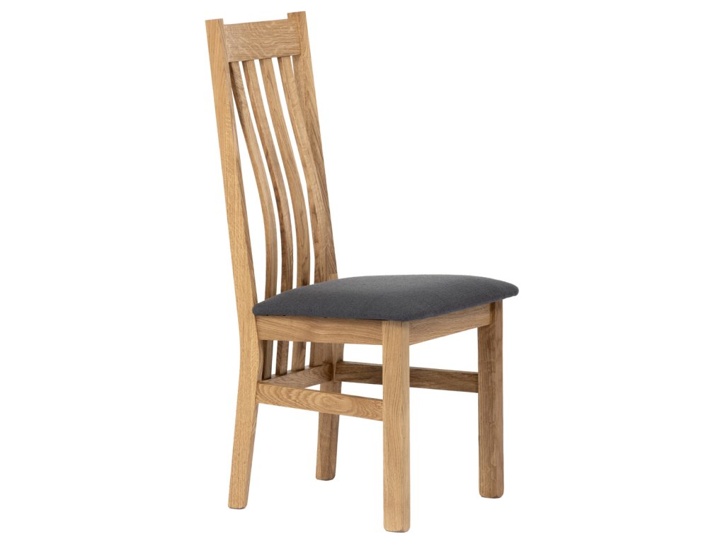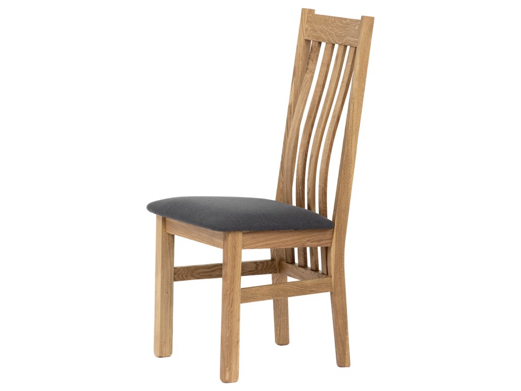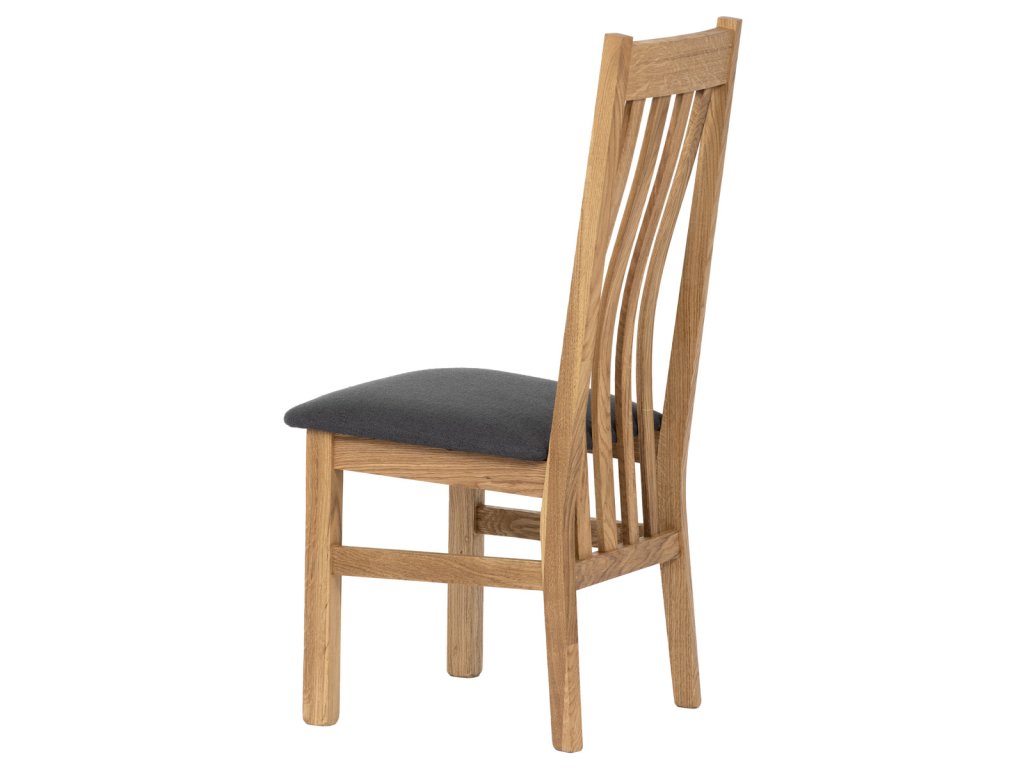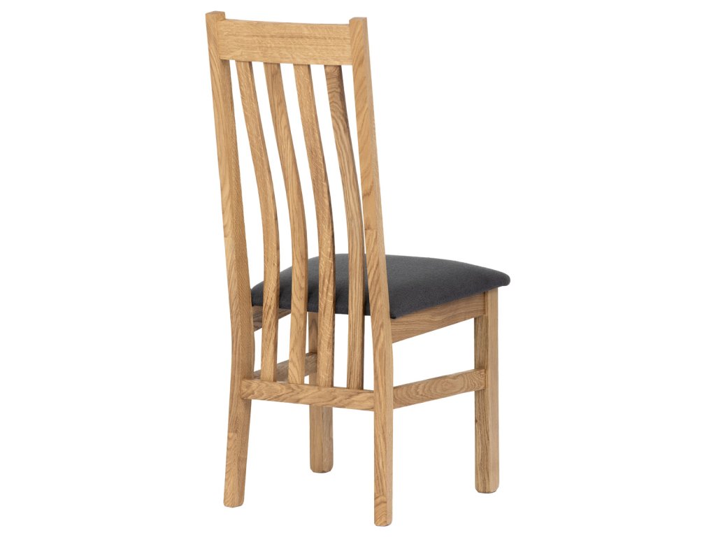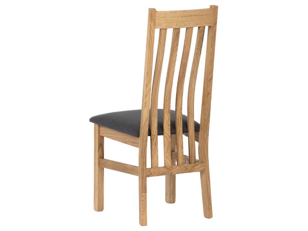 Dřevěná jídelní židle, potah antracitově šedá látka, masiv dub, přírodní odstín C-2100 GREY2 - Dřevěná jídelní židle z masivního dubového dřeva je demonstrací dokonalé řemeslné práce. Zaujme nejen svým rustikálním stylem, ale i perfektním zpracováním. Styl vychází z minimalistického severského designu, v temnějším nádechu přírodního odstínu. Tato barevnost skvěle vykreslí léta dubu a podtrhne její provedení. Čisté linie a vysoce kvalitní řemeslné zpracování dřevěného masivu nastavuje okouzlující akcenty a podtrhuje útulnou atmosféru v interiéru. Tato židle Vás zve nejen k odpočinku, ale rozjímání s rodinou i přáteli, kde oceníte ergonomicky tvarované vzpěry opěradla, kopírující zakřivení páteře. Pohodlný sedák je potažen odolnou látkou z polyesterových vláken, v antracitově šedém barevném odstínu. Polstrování je kvalitní PU pěnou. O kvalitě potahové látky Vás jistě přesvědčí její parametry - gramáž 340 g/m2, martindale naprosto skvělých 80 000 cyklů a barevná stálost na světle je na stupni 5. Povrchová úprava dubové masivní konstrukce je tvrdovoskovým olejem, speciálně určeným pro dlouhodobé ošetření dřeva. Velkým bonusem této židle je její dodání v kompletně smontovaném stavu a se spoji lepenými (!). Tím odpadá nejen nepříjemné studium montážního návodu a následně i montáž, ale židle bude stále pevná a nehrozí, že budete muset v pravidelných cyklech utahovat povolené šrouby. Další pevnostní prvek slouží i trnože mezi nohama. Toto vše dělá ze židle pevný a velice trvanlivý celek s nosností až 140 kg. Elegantním prvkem bude v klasicky laděných interiérech společně s masivním dubovým stolem, ale i kombinace se stolem ve stylu Loft bude velmi zajímavá a nepřehlédnutelná.Doplňkové parametry