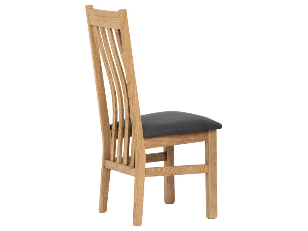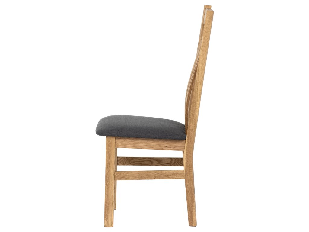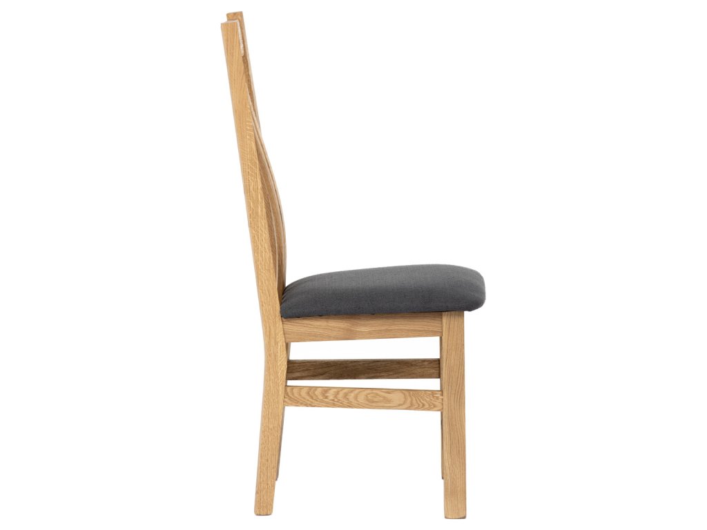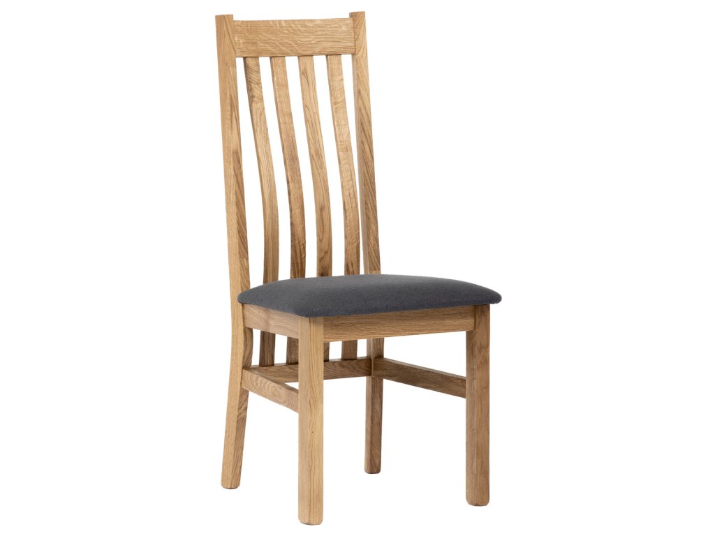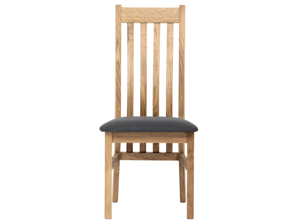 Dřevěná jídelní židle, potah antracitově šedá látka, masiv dub, přírodní odstín C-2100 GREY2 - Dřevěná jídelní židle z masivního dubového dřeva je demonstrací dokonalé řemeslné práce. Zaujme nejen svým rustikálním stylem, ale i perfektním zpracováním. Styl vychází z minimalistického severského designu, v temnějším nádechu přírodního odstínu. Tato barevnost skvěle vykreslí léta dubu a podtrhne její provedení. Čisté linie a vysoce kvalitní řemeslné zpracování dřevěného masivu nastavuje okouzlující akcenty a podtrhuje útulnou atmosféru v interiéru. Tato židle Vás zve nejen k odpočinku, ale rozjímání s rodinou i přáteli, kde oceníte ergonomicky tvarované vzpěry opěradla, kopírující zakřivení páteře. Pohodlný sedák je potažen odolnou látkou z polyesterových vláken, v antracitově šedém barevném odstínu. Polstrování je kvalitní PU pěnou. O kvalitě potahové látky Vás jistě přesvědčí její parametry - gramáž 340 g/m2, martindale naprosto skvělých 80 000 cyklů a barevná stálost na světle je na stupni 5. Povrchová úprava dubové masivní konstrukce je tvrdovoskovým olejem, speciálně určeným pro dlouhodobé ošetření dřeva. Velkým bonusem této židle je její dodání v kompletně smontovaném stavu a se spoji lepenými (!). Tím odpadá nejen nepříjemné studium montážního návodu a následně i montáž, ale židle bude stále pevná a nehrozí, že budete muset v pravidelných cyklech utahovat povolené šrouby. Další pevnostní prvek slouží i trnože mezi nohama. Toto vše dělá ze židle pevný a velice trvanlivý celek s nosností až 140 kg. Elegantním prvkem bude v klasicky laděných interiérech společně s masivním dubovým stolem, ale i kombinace se stolem ve stylu Loft bude velmi zajímavá a nepřehlédnutelná.Doplňkové parametry