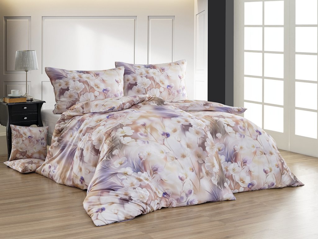 Estrella Mako satén 1x 140/200, 1x 70/90 - Vychutnejte si zasloužený odpočinek s luxusním povlečením Estrella, které vás nadchne ve všech ohledech. Pro mako bavlněný satén, který je vyrobený z prvotřídní egyptské bavlny, vybíráme exkluzivní designové kousky od předních evropských návrhářů. Povlečení Estrella se stane dokonalou ozdobou vaší ložnice a postará se o váš spokojený spánek. Nebojte se zamilovat, mako satén za to stojí! Jemný florální vzor připomíná akvarelovou malbu, která kombinuje velké bílé květy s měkkými přechody v odstínech béžové, pudrové a světle fialové barvy. Povlak na polštář i na přikrývku je z obou stran stejný, vrchní stranu povlaku na polštář zdobí malé logo "M" v pravém dolním rohu. Povlečení je opatřeno komfortním zipovým uzávěrem. Materiál: 100% bavlna (egyptská) Ložní povlečení vás navíc mile překvapí originálním balením, které je ekologické a zároveň praktické - sada povlečení je důmyslně zabalena do stylové látkové tašky ve stejném dezénu, se kterou můžete vyrazit po nákupech! Klasický rozměr ložního setu je možné zakoupit v sadě, která obsahuje 2x povlak na přikrývku 140/200 cm a 2x povlak na polštář 70/90 cm.Doplňkové parametry