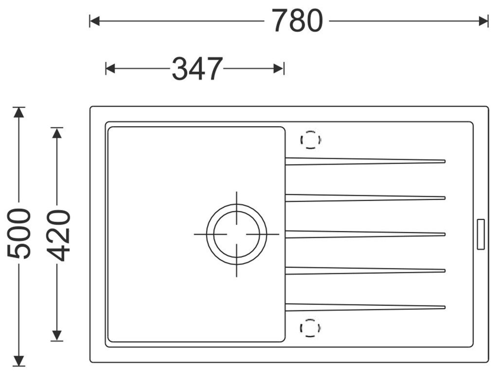 Dřez je určen pro horní i spodní montáž do pracovní desky a minimálně 450 mm široké skříňky. Pro spodní montáž (do kamenné desky) je nutné přikoupit speciální montážní sadu.