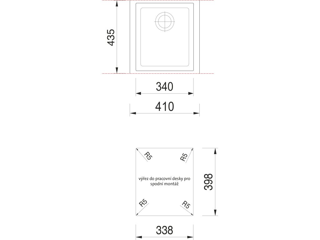 Granitový dřez CUBE 340U Nanoblack pro spodní montáž