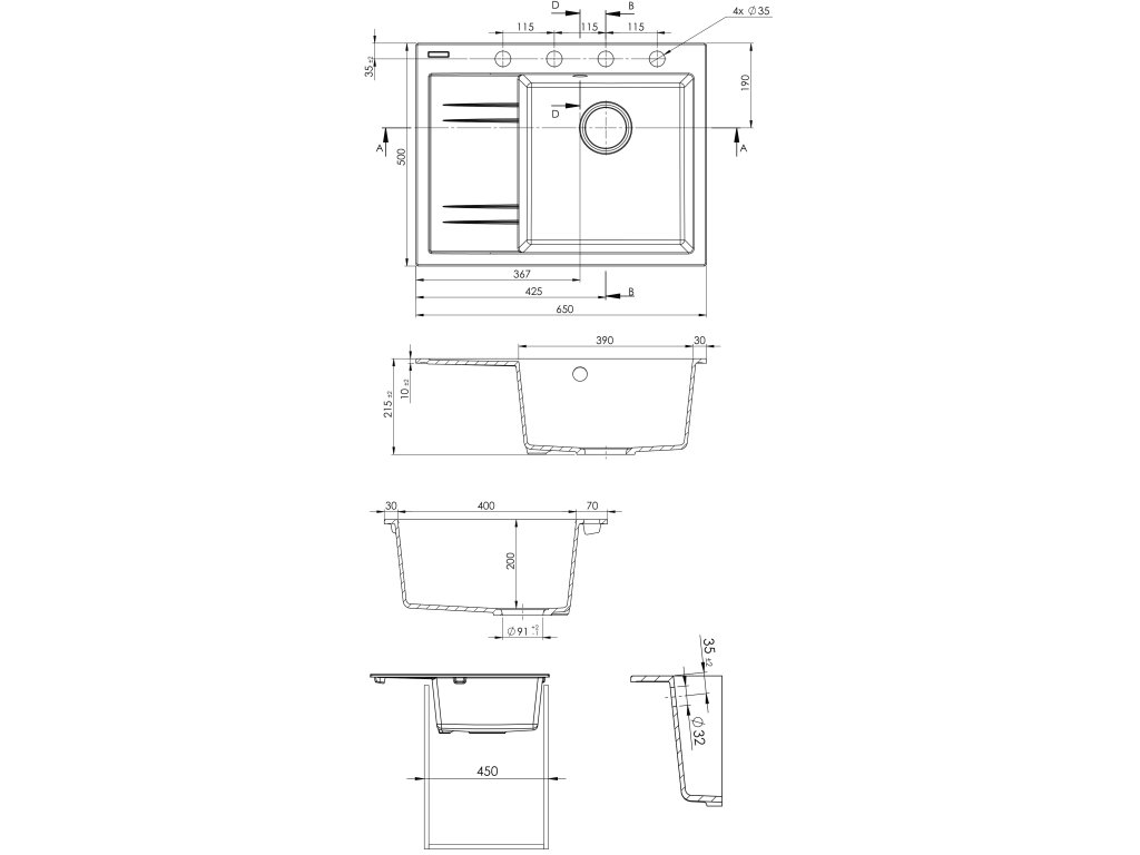 | Konstrukční typ: | Dřezy s odkapem |