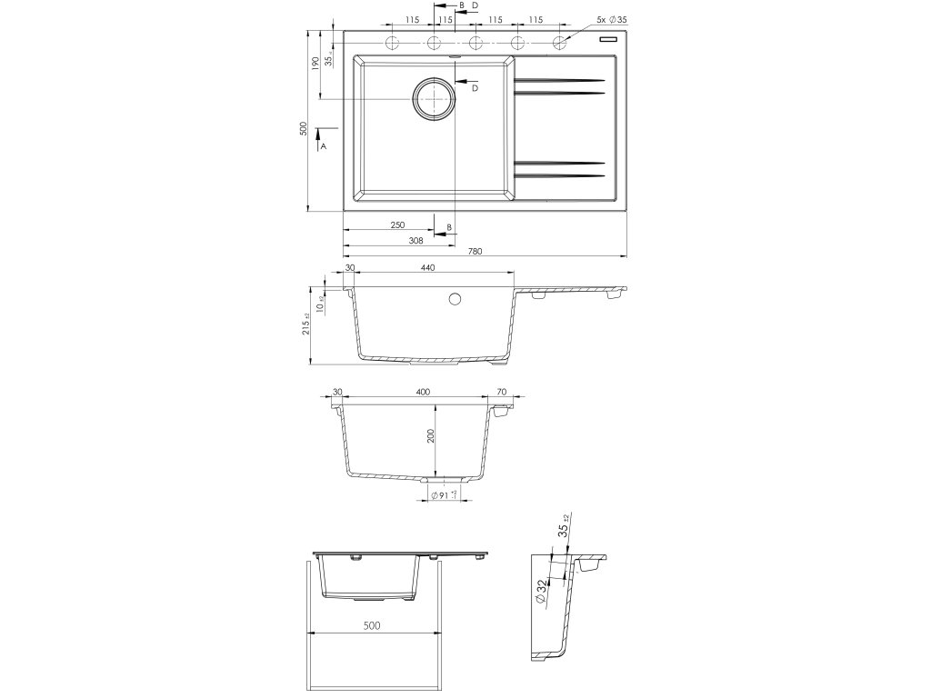 Hladký povrch dřezu usnadňuje čištění a udržování hygieny. Granitový materiál je odolný vůči bakteriím a zápachům.