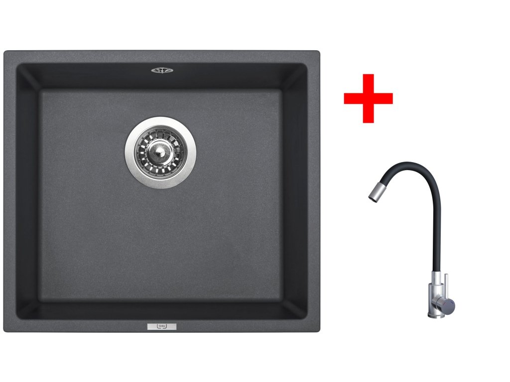 Granitový set dřezu a baterie FRAME 457 Titanium + Elasta nerez/černá