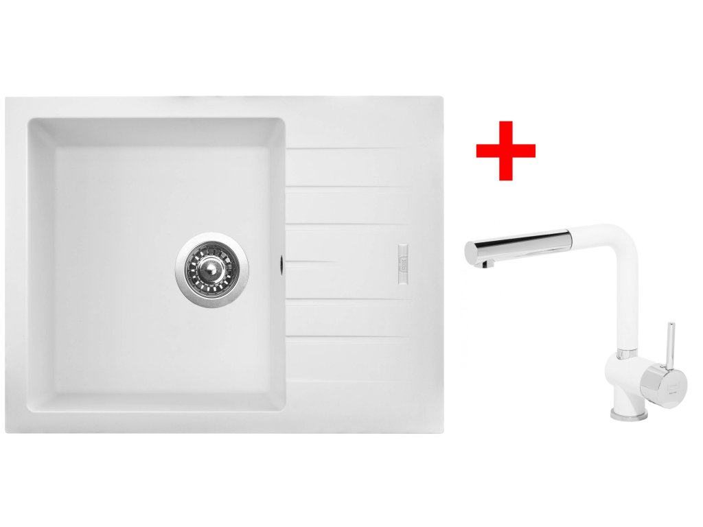 Granitový set dřezu a baterie PERFECTO 650 Milk + MIX 3 P GR