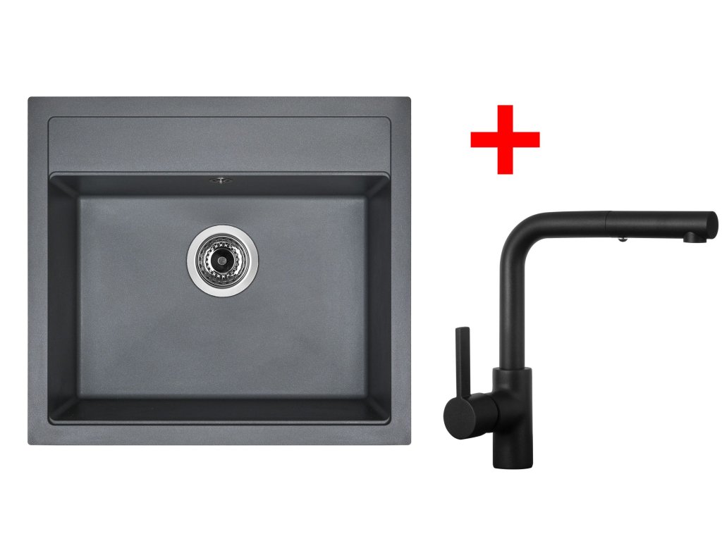 Granitový set dřezu a baterie SOLO 560 Titanium + ENIGMA S Černá matná