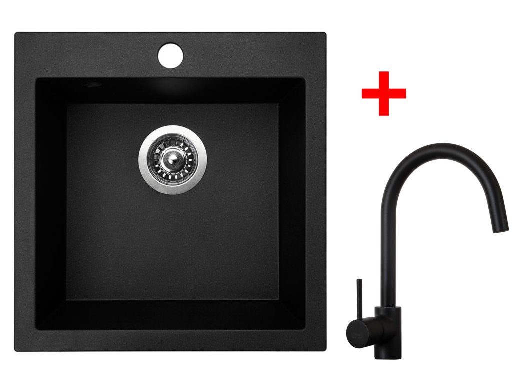 Granitový set dřezu a baterie VIVA 455 Granblack + Vitalia černá matná