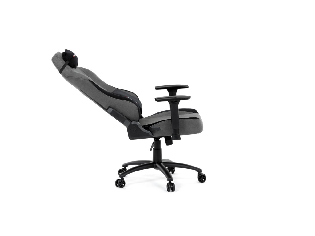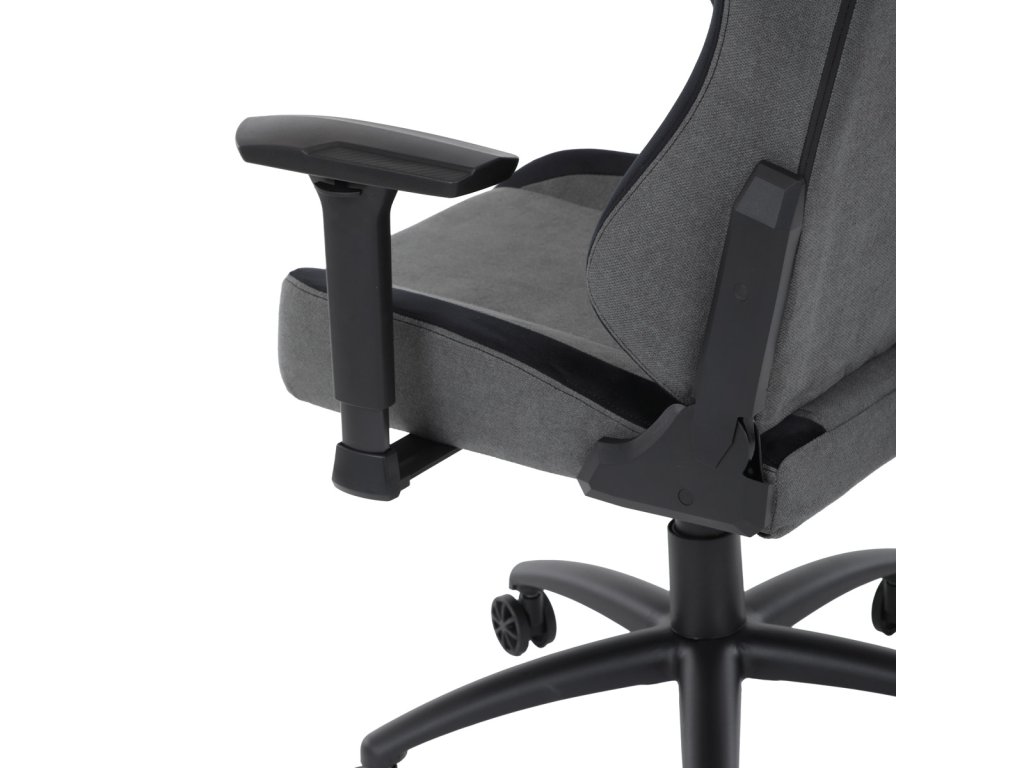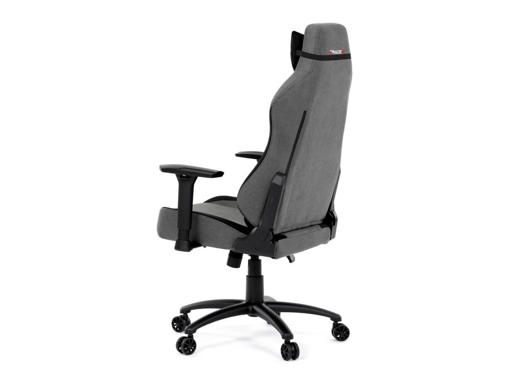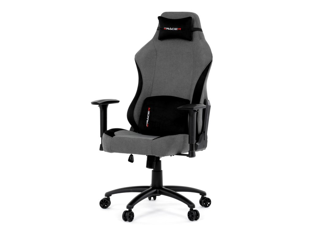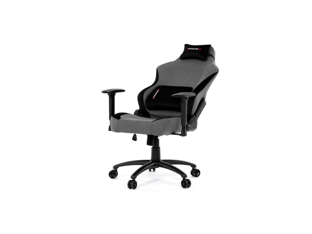 Herní křeslo, šedá látka, houpací mechanismus, polohování opěradla 90°-180°, 3D područky, polštáře z paměťové pěny, nosn KA-F12 GREY2