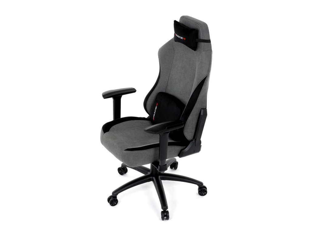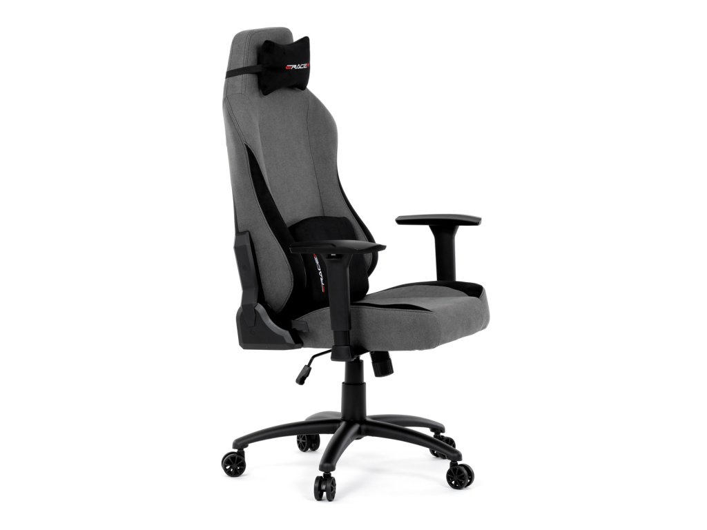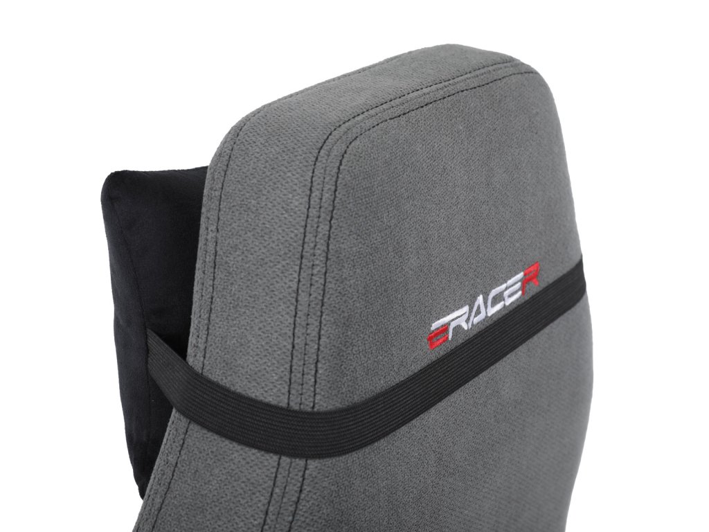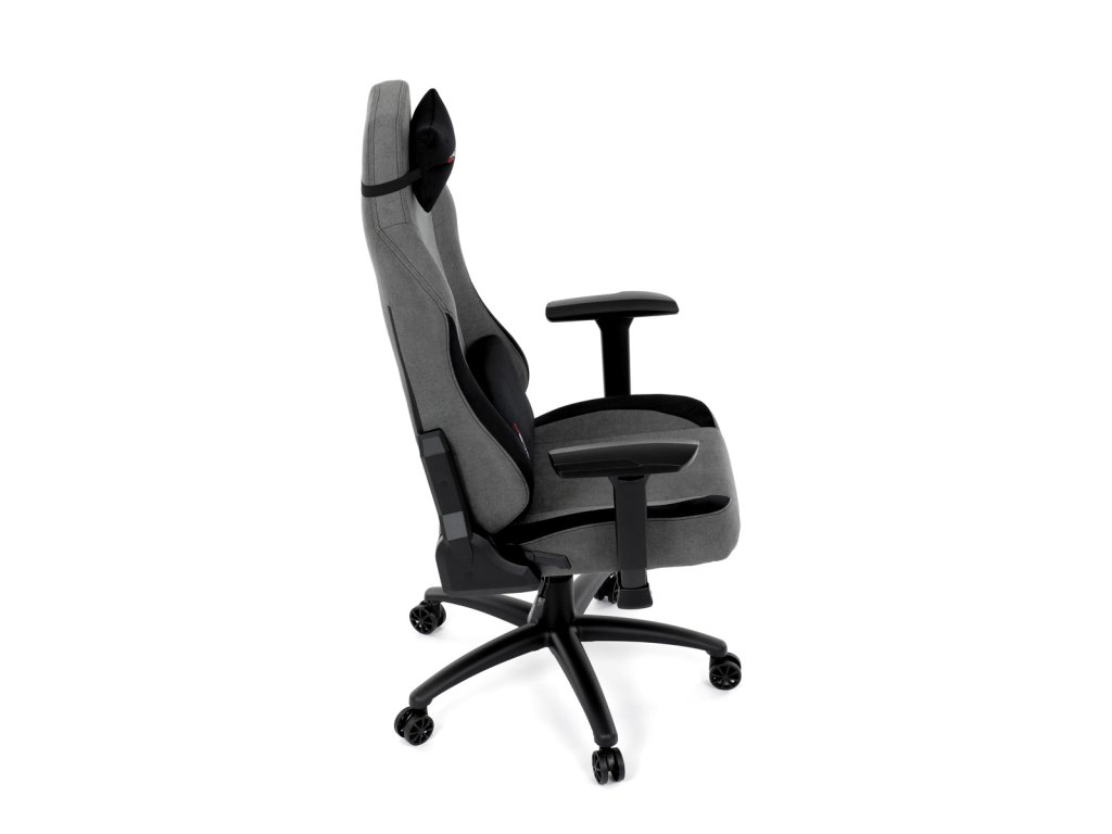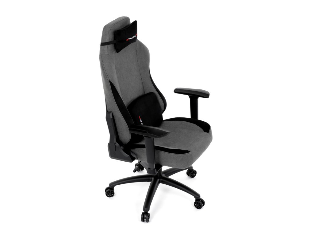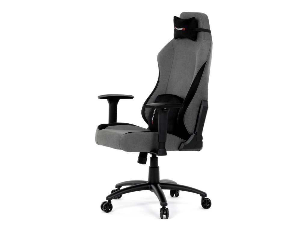 Herní křeslo, šedá látka, houpací mechanismus, polohování opěradla 90°-180°, 3D područky, polštáře z paměťové pěny, nosn KA-F12 GREY2