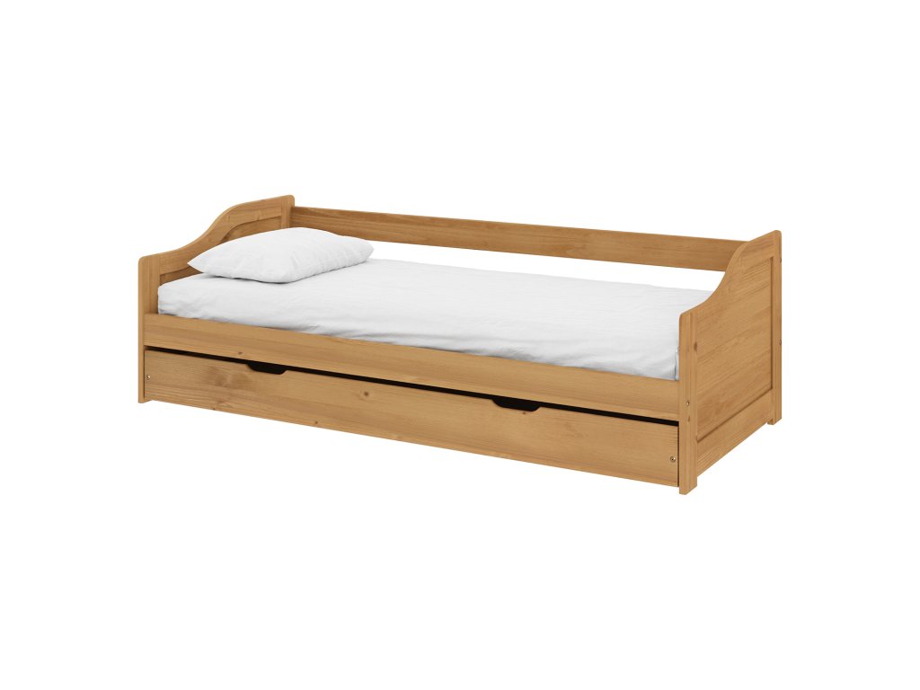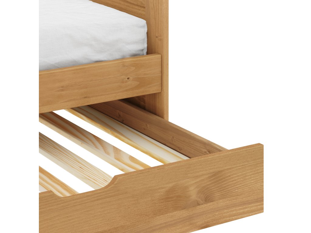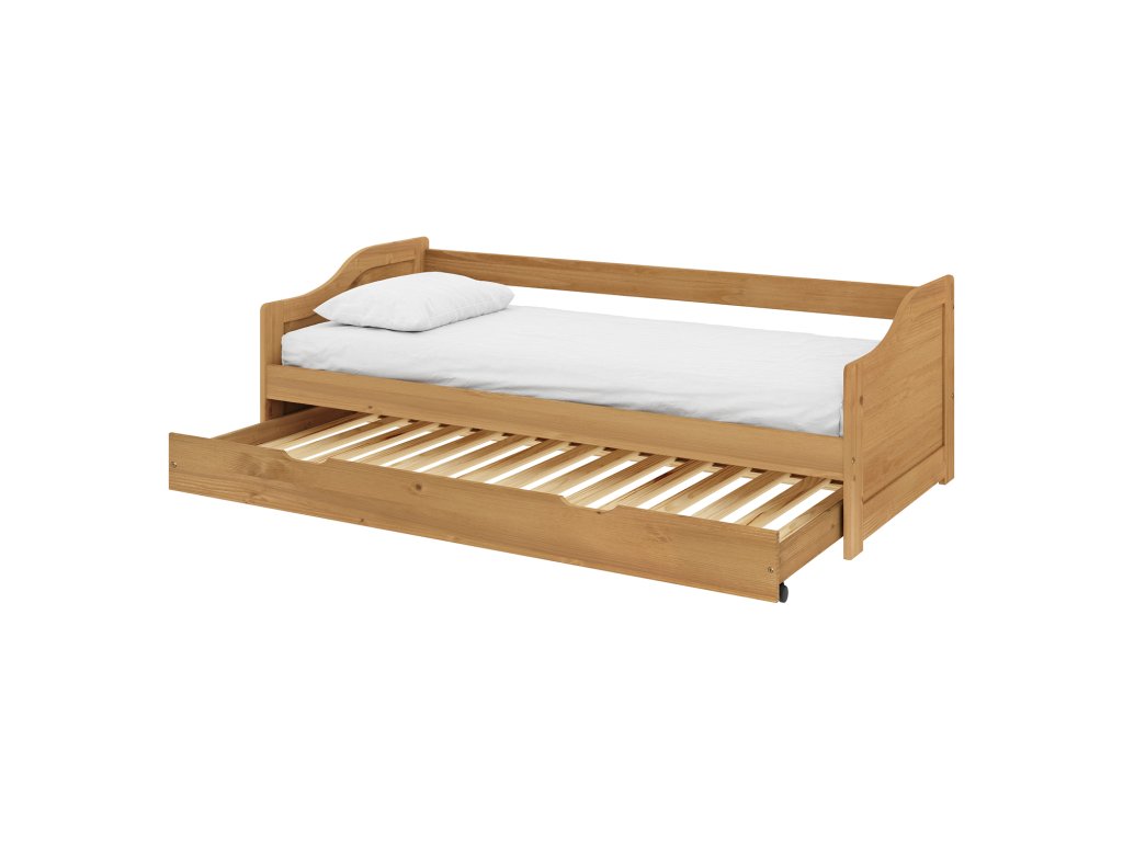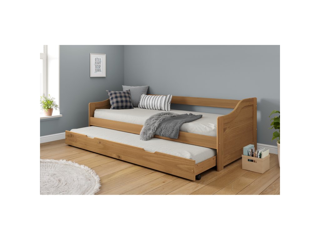 Jednolůžko s přistýlkou LAURA vosk - materiál masiv borovice, voskované provedení výška sedu postele 37 cm dřevěné laťkové rošty jsou v ceně, matrace nejsou v ceně výsuv možno využít jako úložný prostor nebo jako přistýlku doporučená výška matrace pro přistýlku 10 cm doporučený rozměr matrací 90 × 200 cmDoplňkové parametry
