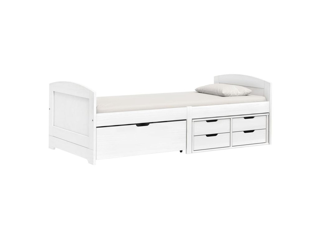 Jednolůžko se zásuvkami 8816B MARY bílý lak - materiál masiv borovice, barevné provedení bílý lak praktické úložné prostory pod postelí (zásuvky) v ceně cena včetně roštu (dřevěný laťkový), matrace není v ceně doporučený rozměr matrace 90 × 200 cmDoplňkové parametry