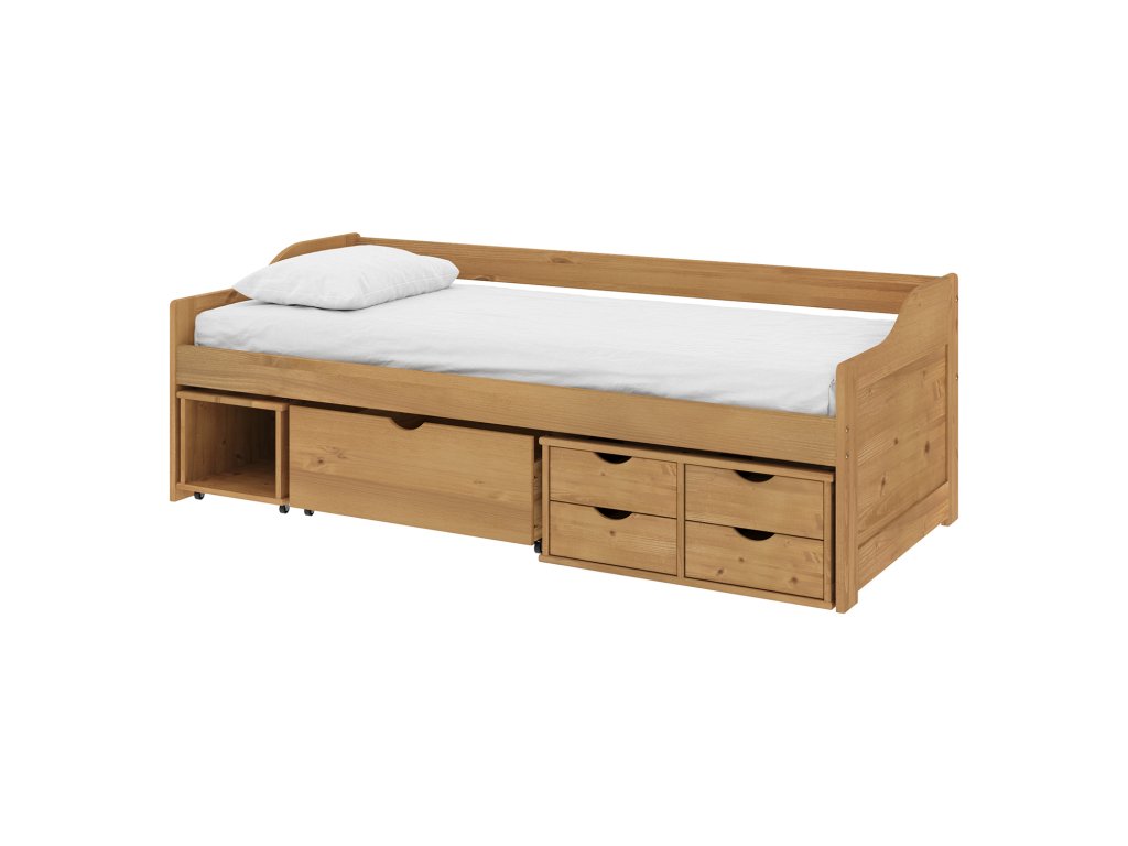 Jednolůžko se zásuvkami MAXIMA vosk - materiál masiv borovice, voskované provedení cena včetně roštu (dřevěný laťkový), matrace není v ceně doporučený rozměr matrace 90 × 200 cm (M2, M5, M9, M12, M24, M26) praktické úložné prostory pod postelí (5 zásuvek) v ceněDoplňkové parametry