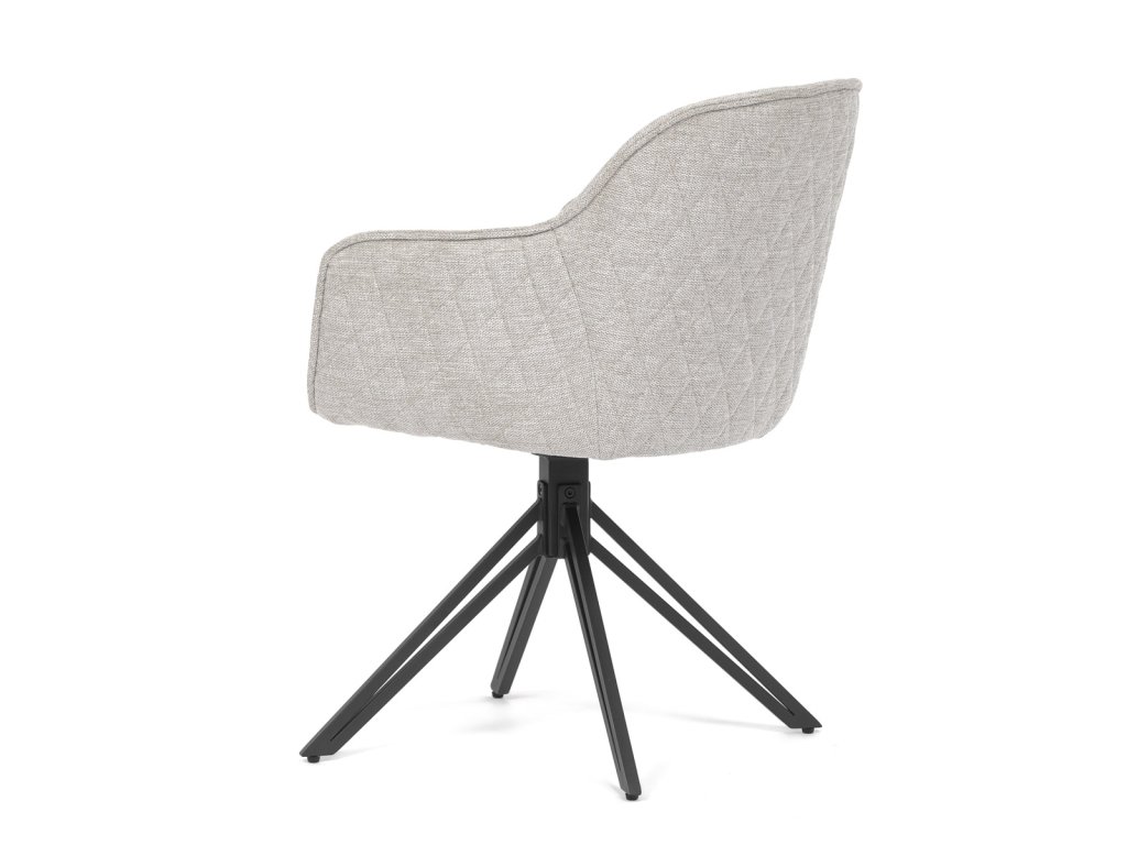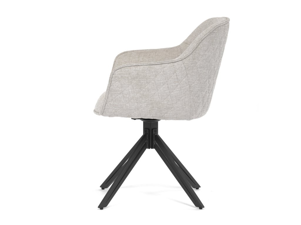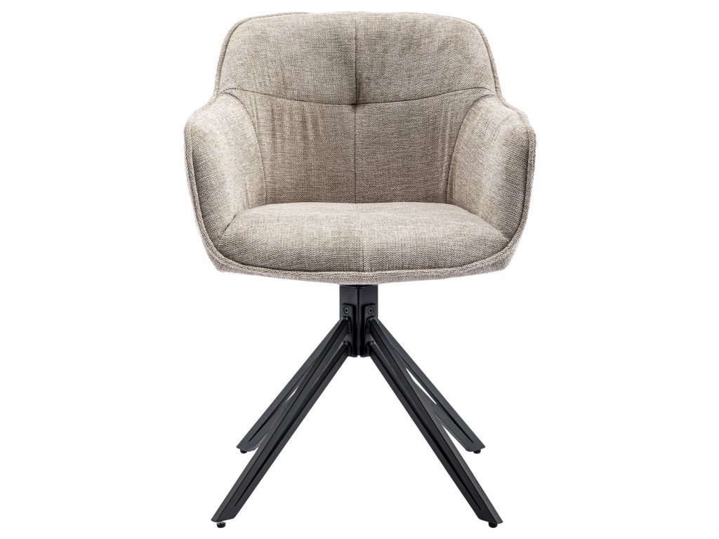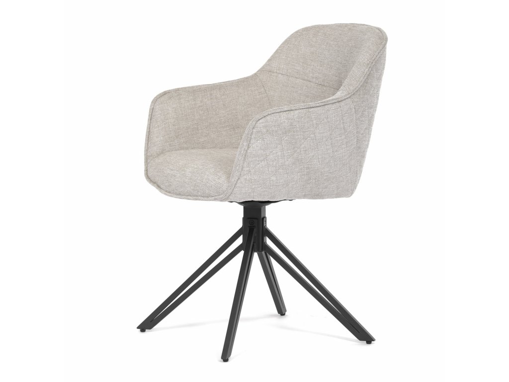 Jídelní a konferenční židle, potah krémová látka, kovové nohy, černý mat HC-533 CRM2 - Jídelní a konferenční židle skořepinové konstrukce v zajímavém designu a ve velmi žádaném industriálním / loft stylu. Židle disponuje otočnou funkcí L90°/P90° s automaticky vratným mechanismem. Konstrukce sedáku i opěradla má pevnou kovovou kostru, potah je z jemně hrubé látky v béžovém odstínu. Polstrování je z pevné PU pěny, na sedáku v hustotě 28 kg/m3 a na opěradle 24 kg/m3. K pohodlí posedu poslouží nejen bohaté polstrování, ale i praktické a pohodlné opěrky rukou. Příjemný dekorativní prvky tvoří centrální čalounický vtah na opěradle a z vnější strany kosočtvercové prošívání. Nedílnou součástí je široká látková paspule v barvě židle, lemující celý obvod. Stabilitu zajišťuje designovaná čtyřnohá podnož s centrálním uchycením skořepiny. Konstrukce jednotlivých paprsků nohou je čtvercového průřezu, odlehčena středovým průzorem. Povrchová úprava je kvalitním práškovým nástřikem v černé matné barvě. Podnož židle je rektifikovatelná, na každém paprsku nohy je výškově nastavitelný kluzák s plastovým krytem. Ten zamezí možnosti poškození tvrdých podlah. Tento model je dobrou volbou pro Váš výběr do jídelních nebo obývacích prostor, hodí se i jako konferenční židle, kde ale musíte oželit možnosti jejího otáčení. Nosnost je do 120 kg, Základní rozměry – celková šíře 57 cm, celková hloubka 58 cm, celková výška 84 cm a výška sedu 50 cm. Montáž není složitá, zvládne ji i méně zručný nový majitel této židle.Doplňkové parametry