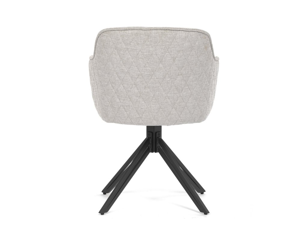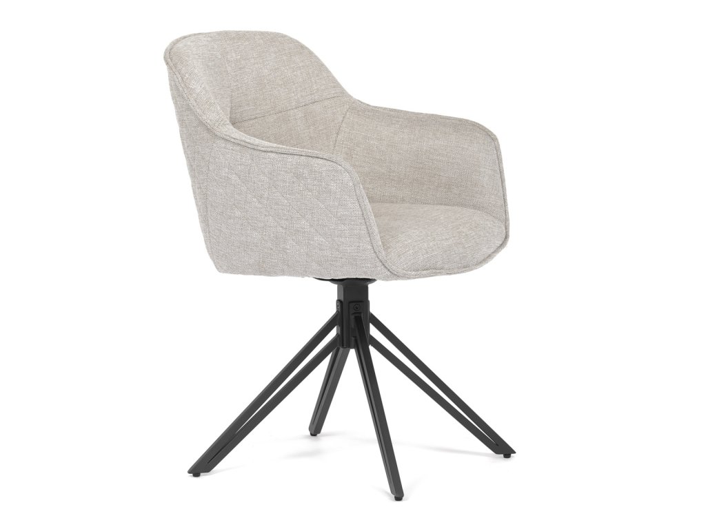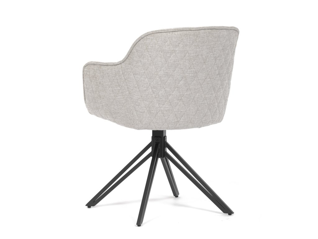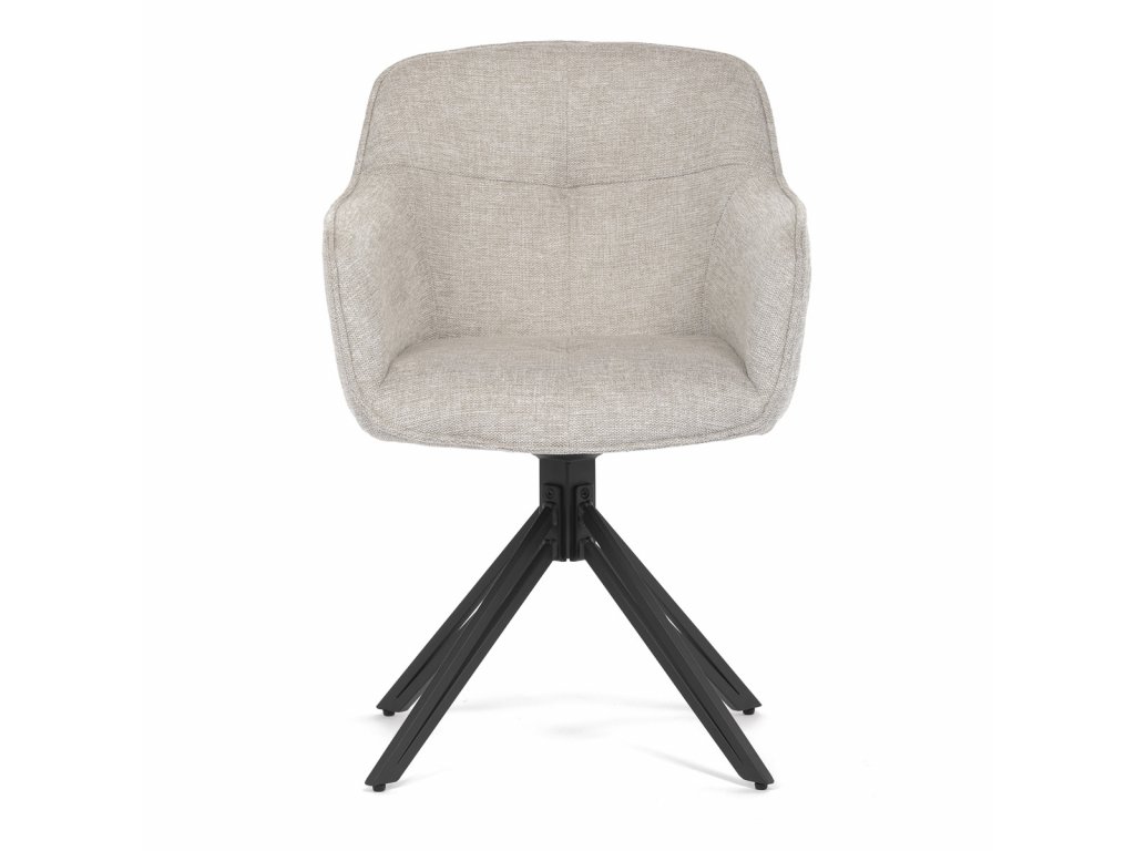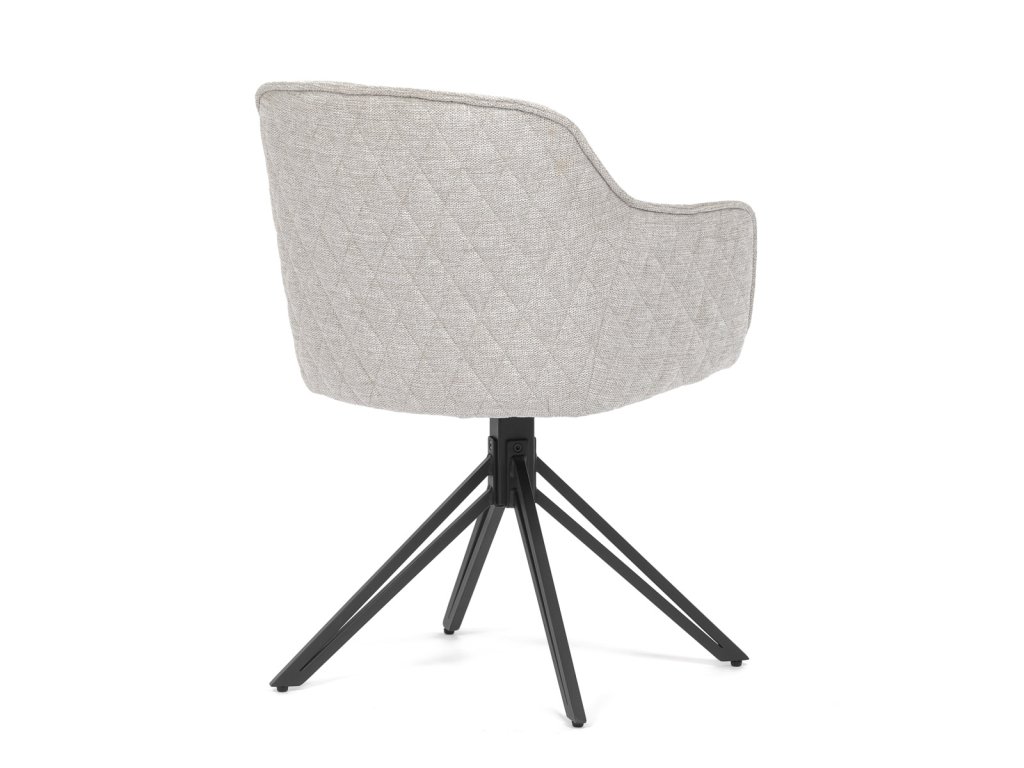 Jídelní a konferenční židle, potah krémová látka, kovové nohy, černý mat HC-533 CRM2 - Jídelní a konferenční židle skořepinové konstrukce v zajímavém designu a ve velmi žádaném industriálním / loft stylu. Židle disponuje otočnou funkcí L90°/P90° s automaticky vratným mechanismem. Konstrukce sedáku i opěradla má pevnou kovovou kostru, potah je z jemně hrubé látky v béžovém odstínu. Polstrování je z pevné PU pěny, na sedáku v hustotě 28 kg/m3 a na opěradle 24 kg/m3. K pohodlí posedu poslouží nejen bohaté polstrování, ale i praktické a pohodlné opěrky rukou. Příjemný dekorativní prvky tvoří centrální čalounický vtah na opěradle a z vnější strany kosočtvercové prošívání. Nedílnou součástí je široká látková paspule v barvě židle, lemující celý obvod. Stabilitu zajišťuje designovaná čtyřnohá podnož s centrálním uchycením skořepiny. Konstrukce jednotlivých paprsků nohou je čtvercového průřezu, odlehčena středovým průzorem. Povrchová úprava je kvalitním práškovým nástřikem v černé matné barvě. Podnož židle je rektifikovatelná, na každém paprsku nohy je výškově nastavitelný kluzák s plastovým krytem. Ten zamezí možnosti poškození tvrdých podlah. Tento model je dobrou volbou pro Váš výběr do jídelních nebo obývacích prostor, hodí se i jako konferenční židle, kde ale musíte oželit možnosti jejího otáčení. Nosnost je do 120 kg, Základní rozměry – celková šíře 57 cm, celková hloubka 58 cm, celková výška 84 cm a výška sedu 50 cm. Montáž není složitá, zvládne ji i méně zručný nový majitel této židle.Doplňkové parametry