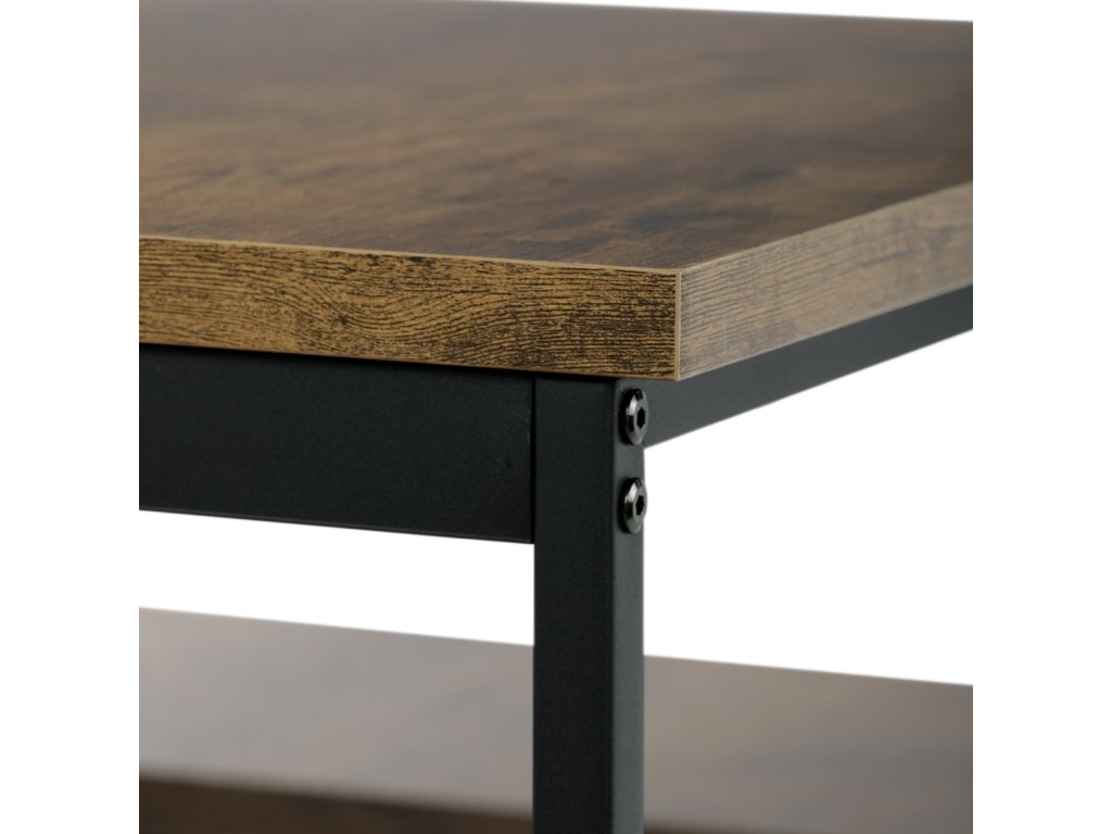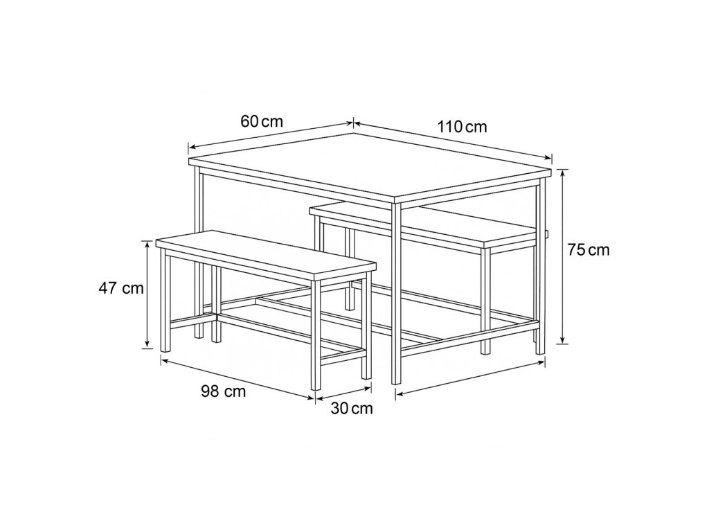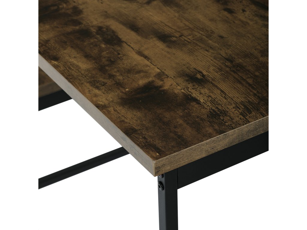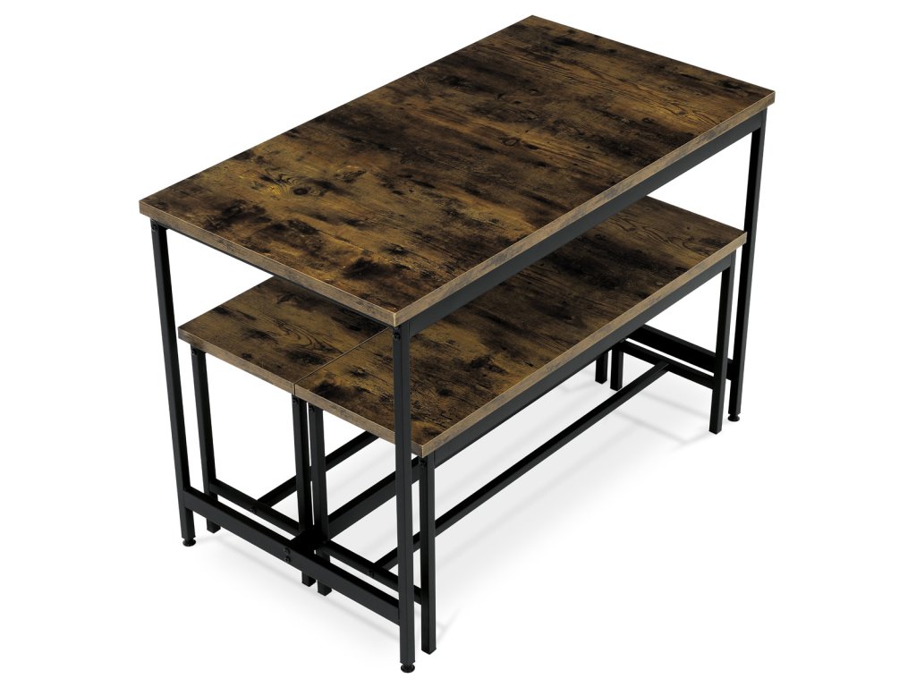 Jídelní set 1+2, rozměr stolu 110x60x75, rozměr lavice 98x30x47, MDF, barva staré dřevo AUT-G1175 OLW - Jídelní set značky Autronic v industriálním stylu je praktickým a stylovým řešením pro vaši jídelnu či kuchyň. Sestava obsahuje obdélníkový stůl a dvě lavice, které lze snadno zasunout pod stůl a ušetřit tak místo. Desky v dekoru starého dřeva dodávají příjemnou přírodní atmosféru, zatímco černé kovové nohy zajišťují stabilitu a moderní kontrast.Doplňkové parametry