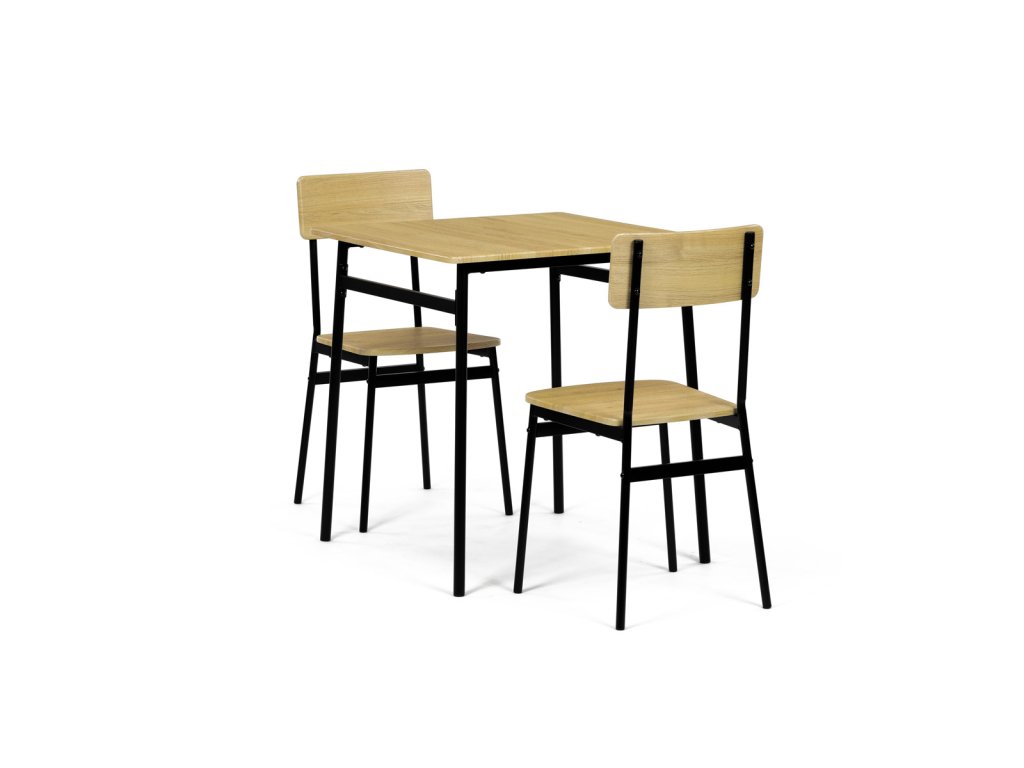 Jídelní set 1+2, rozměr stolu 70x70x76 cm, MDF, kov, divoký dub, černá AUT-O2121 OAK - Tento jídelní set značky Autronic je ideální volbou pro menší prostory. Set obsahuje čtvercový stůl a dvě židle, které se svým industriálním designem dokonale hodí do moderních interiérů. Deska stolu i sedáky jsou vyrobeny z odolného MDF s dekorem divokého dubu. Černé kovové nohy dodávají sestavě stabilitu a moderní kontrast. Tento set je ideální pro dvě osoby a je vhodný zejména do menších jídelen nebo kuchyní. Montáž je snadná a rychlá, ideální řešení pro moderní bydlení.Doplňkové parametry