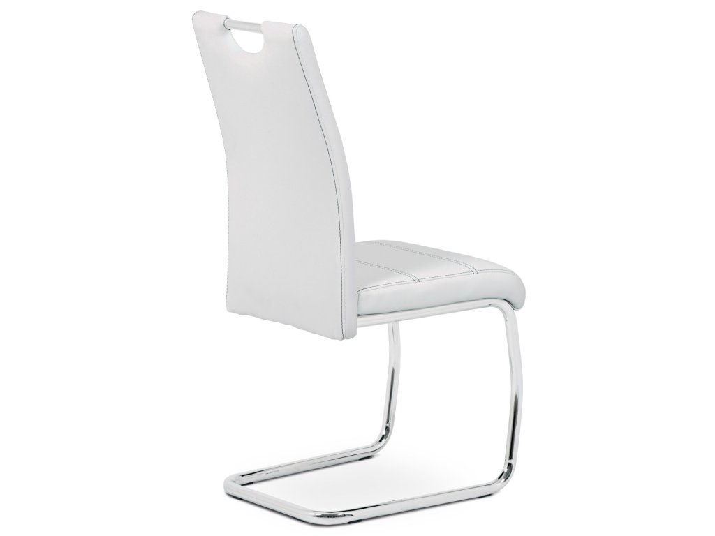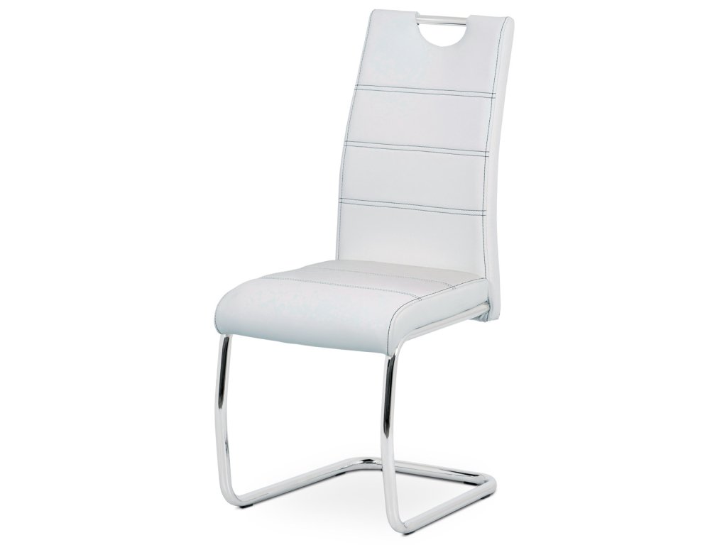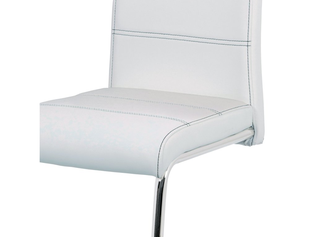 Jídelní židle, potah bílá ekokůže, černé prošití, kovová pohupová podnož, chrom HC-481 WT