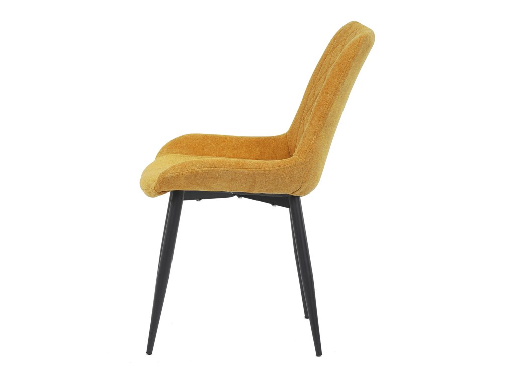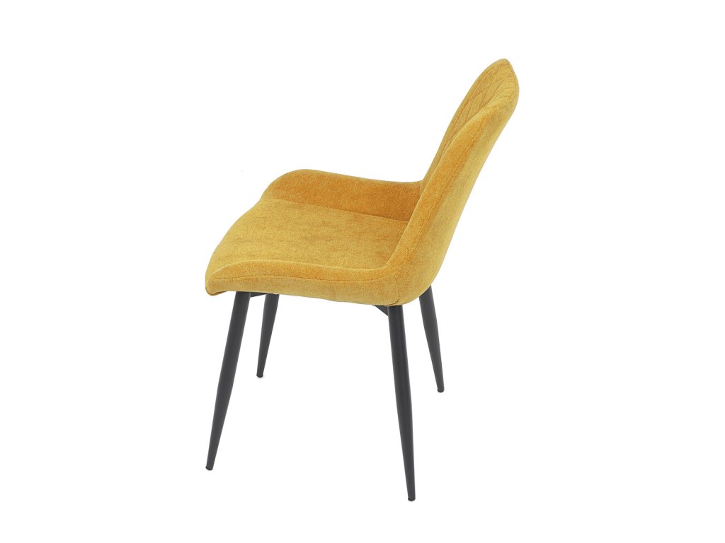 Jídelní židle, žlutá látka, černý kov DCL-218 YEL2 - Jídelní židle s označením DCL-218 YEL2 kombinuje pohodlí a moderní design v žlutém látkovém potahu s výrazným prošitím ve tvaru kosočtverců. Sedák a opěradlo jsou ergonomicky tvarované pro příjemné sezení během jídel i delších posezení. Stabilní kovová podnož v černé barvě zajišťuje pevnost a odolnost celé židle, přičemž nohy jsou mírně zkosené pro lepší stabilitu. Absence područek umožňuje snadné zasunutí židle pod stůl a šetří prostor v jídelně. Židle je určena pro běžné domácí použití a její látkový potah je příjemný na dotek a snadno se udržuje.Doplňkové parametry