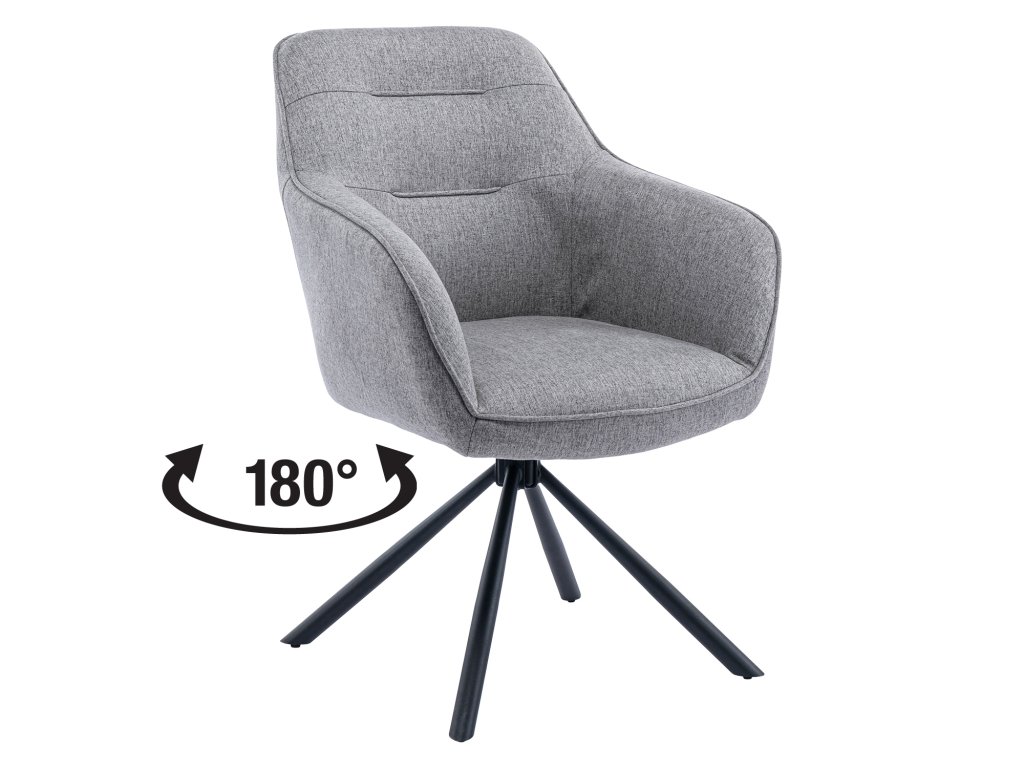 Jídelní židle KANADER šedá - textilní potah, barevné provedení šedá kovová konstrukce, barevné provedení černá otočná o 180 stupňů výška sedu 48 cm doporučená nosnost do 120 kgBuďte první, kdo napíše příspěvek k této položce.