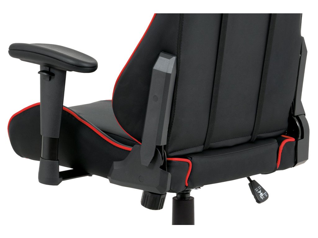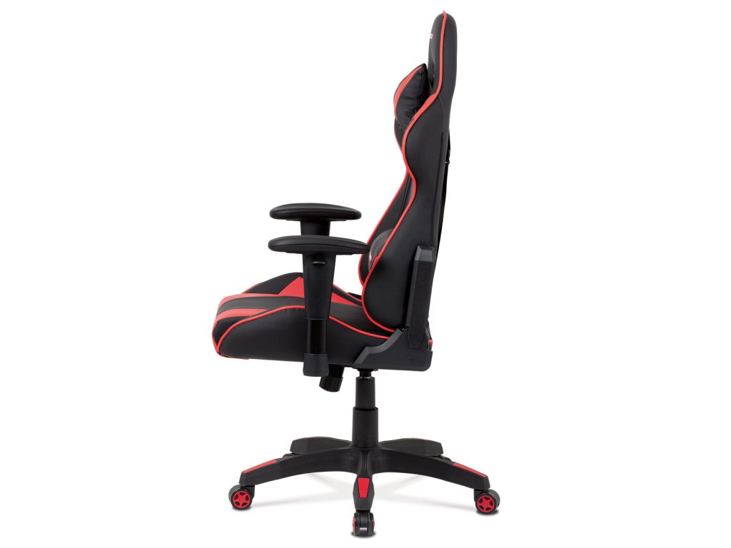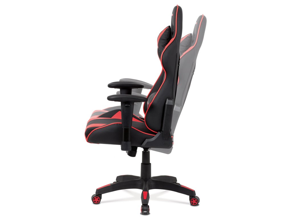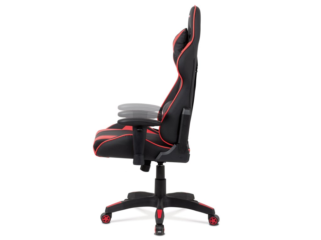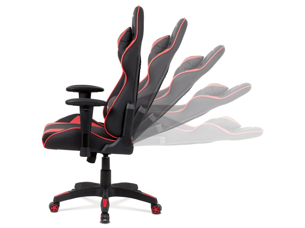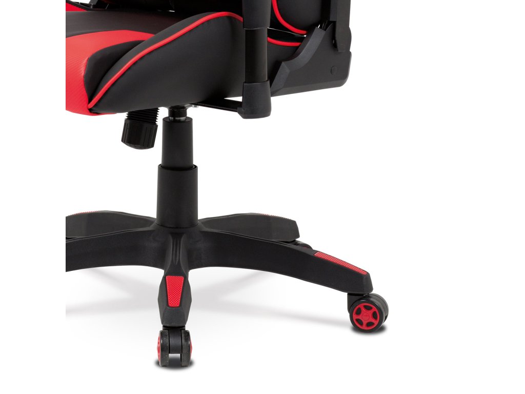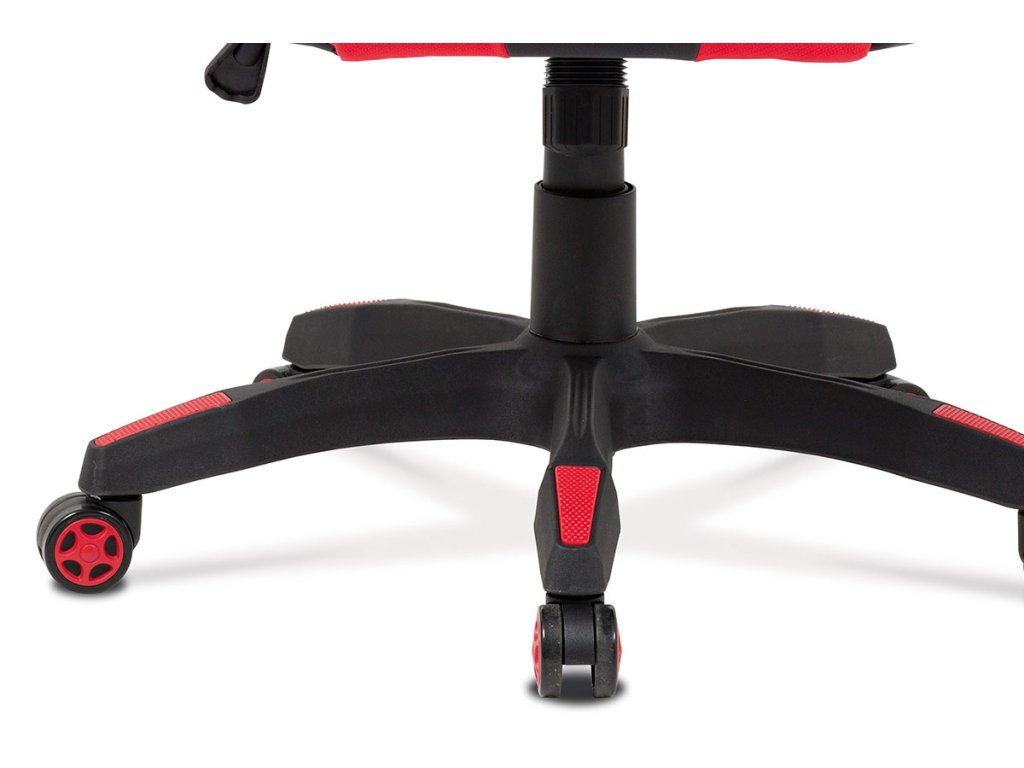Kancelářská židle houpací mech., černá + červená koženka, plast. kříž KA-F03 RED - Kancelářská židle KA-F03 RED je herní model potažený červenou a černou ekokůží, která zajišťuje snadnou údržbu a odolnost proti opotřebení. Plastový kříž s pěti rameny poskytuje stabilní základnu, zatímco houpací mechanismus umožňuje plynulé naklápění opěradla až do 180°, což umožňuje maximální relaxaci. Výškově nastavitelné sedadlo a 2D područky s možností nastavení výšky a hloubky přispívají k ergonomickému sezení přizpůsobenému individuálním potřebám uživatele. Integrovaná bederní opěrka a polštářek pro oporu hlavy podporují správné držení těla během dlouhých hodin práce nebo hraní. Židle je navržena pro dlouhodobé používání s důrazem na komfort i funkčnost.Doplňkové parametry
