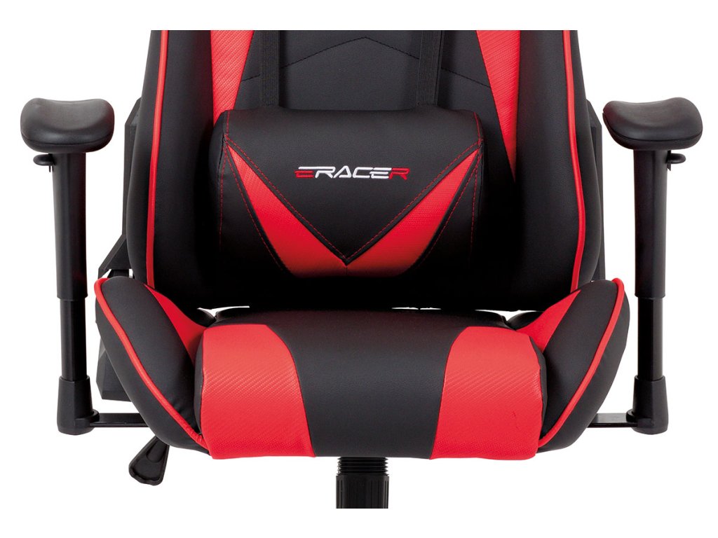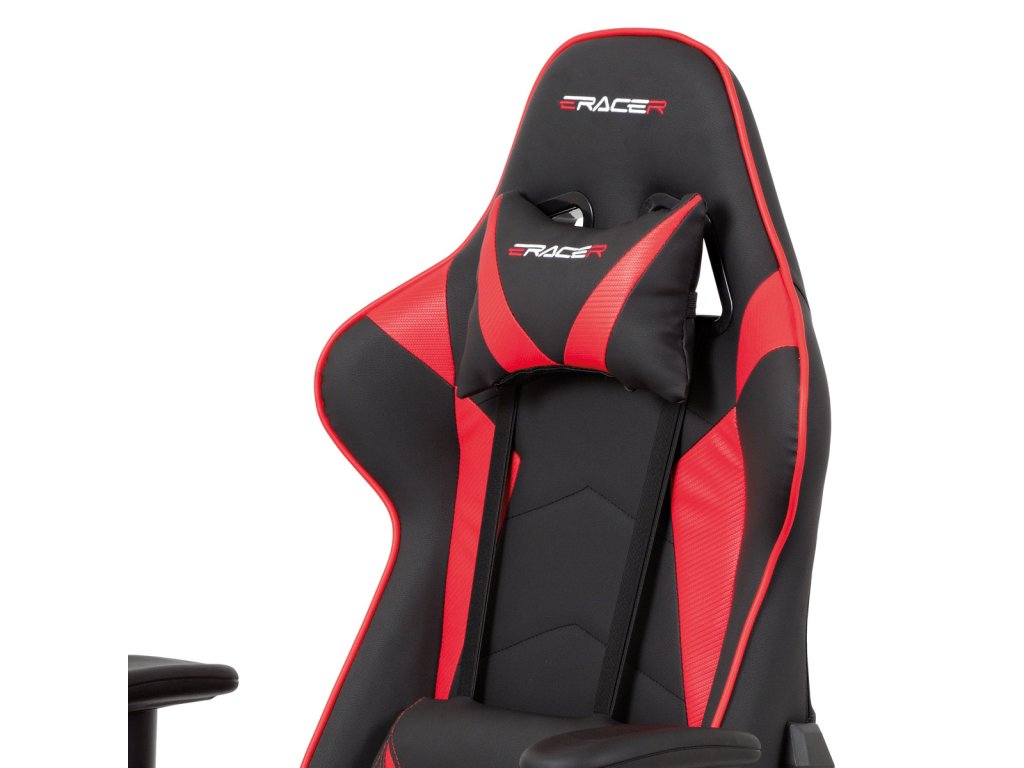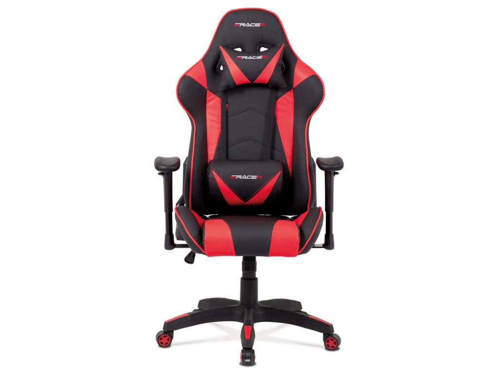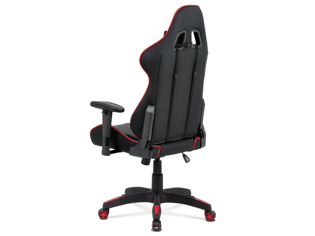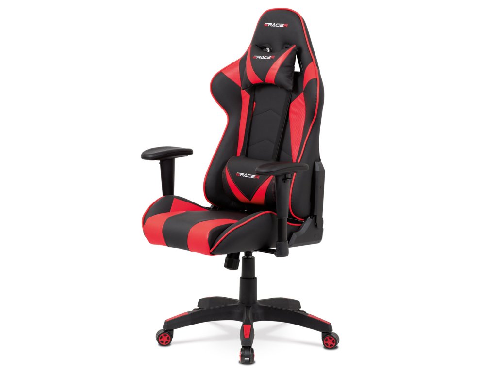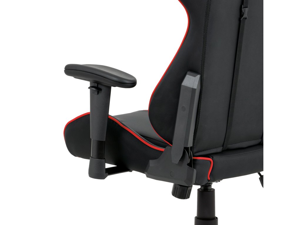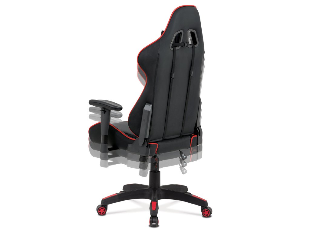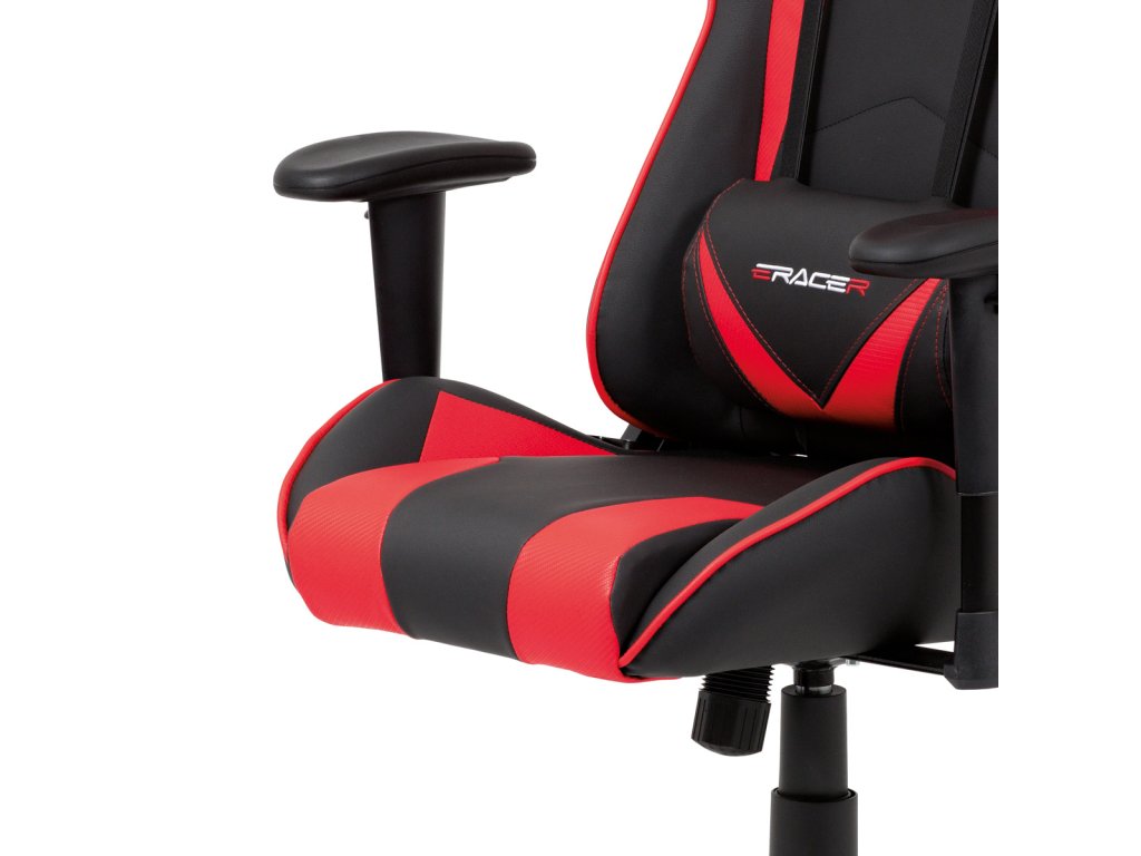 Kancelářská židle houpací mech., černá + červená koženka, plast. kříž KA-F03 RED - Kancelářská židle KA-F03 RED je herní model potažený červenou a černou ekokůží, která zajišťuje snadnou údržbu a odolnost proti opotřebení. Plastový kříž s pěti rameny poskytuje stabilní základnu, zatímco houpací mechanismus umožňuje plynulé naklápění opěradla až do 180°, což umožňuje maximální relaxaci. Výškově nastavitelné sedadlo a 2D područky s možností nastavení výšky a hloubky přispívají k ergonomickému sezení přizpůsobenému individuálním potřebám uživatele. Integrovaná bederní opěrka a polštářek pro oporu hlavy podporují správné držení těla během dlouhých hodin práce nebo hraní. Židle je navržena pro dlouhodobé používání s důrazem na komfort i funkčnost.Doplňkové parametry