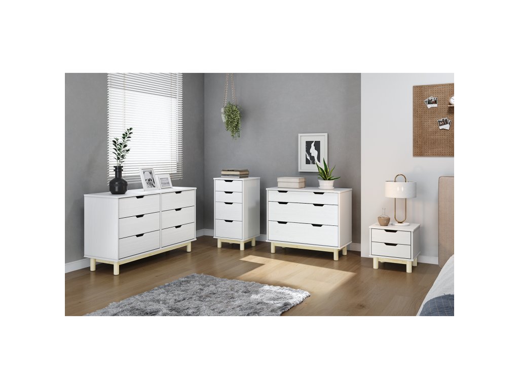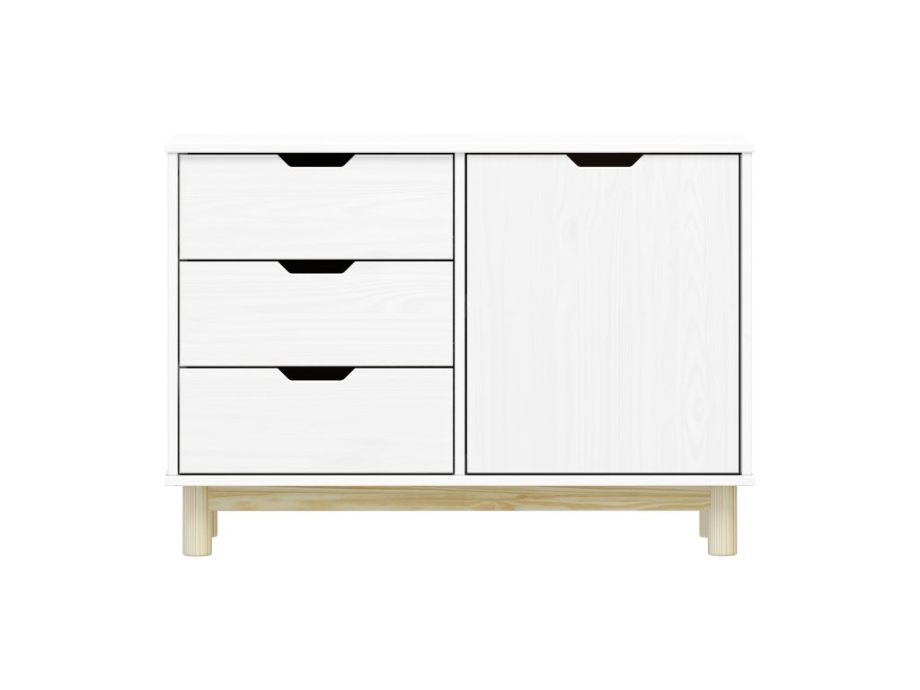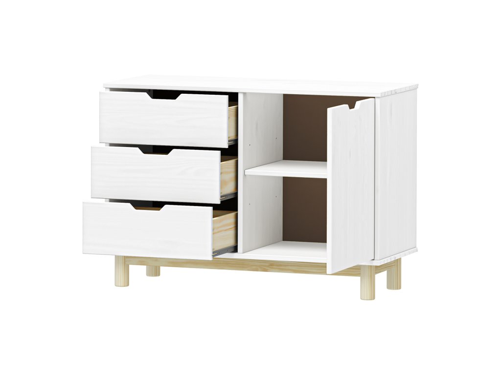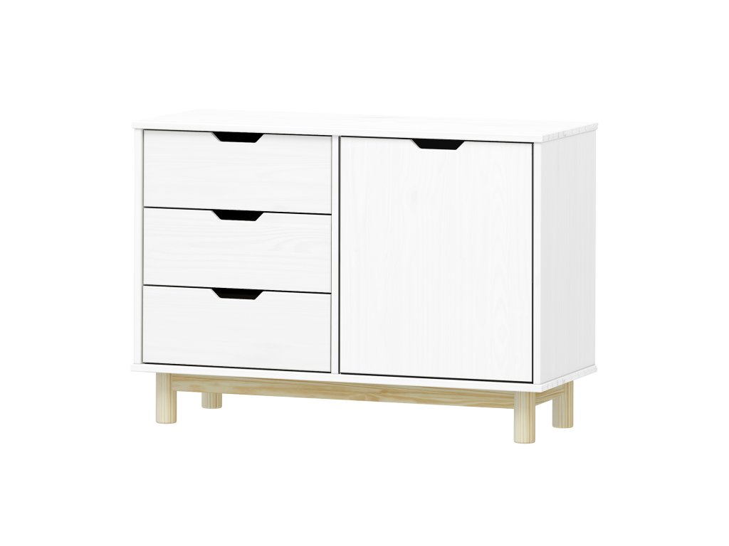 Komoda 1 dveře + 3 zásuvky BONITO 2 bílý lak - materiál masiv borovice, barevné provedení bílý lak 3 zásuvky s kovovými pojezdy, 1 dvířka, 1 policeBuďte první, kdo napíše příspěvek k této položce.