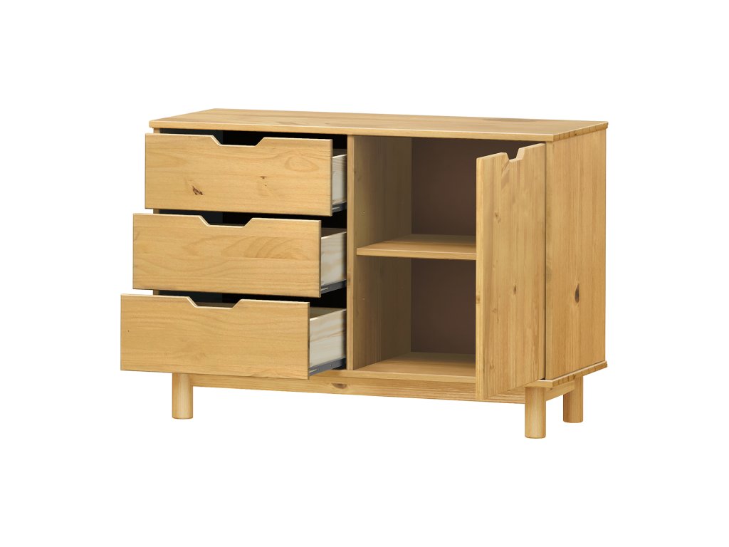 Komoda 1 dveře + 3 zásuvky BONITO 2 vosk - materiál masiv borovice voskovaná v medovém odstínu 3 zásuvky s kovovými pojezdy, 1 dvířka, 1 policeBuďte první, kdo napíše příspěvek k této položce.
