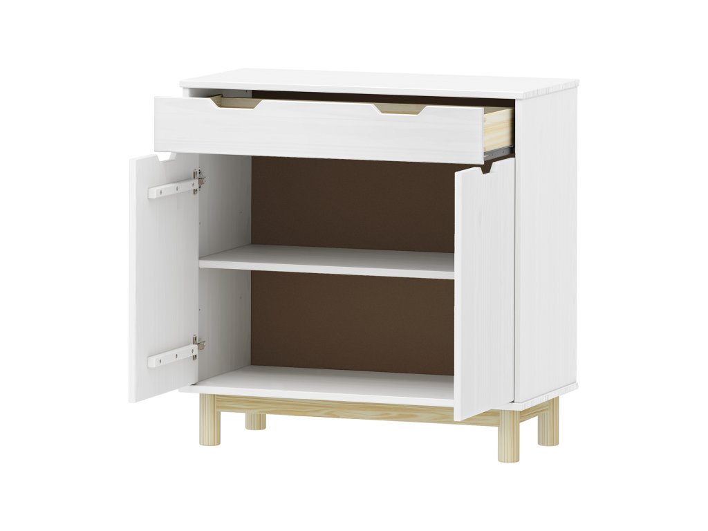 Komoda 2 dveře + 1 zásuvka BONITO 2 bílý lak - materiál masiv borovice, barevné provedení bílý lak 1 zásuvka s kovovými pojezdy, 2 dvířka, 1 policeBuďte první, kdo napíše příspěvek k této položce.