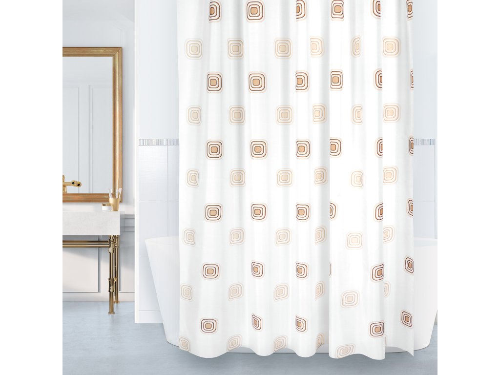 Koupelnové závěsy jsou vyrobeny z kvalitní polyesterové tkaniny, dlouhodobě voděodolné. Součástí každého balení je 12 ks závěsných kroužků k uchycení. Závěsy nabízíme v různých dezénech a budou ozdobou každé koupelny.