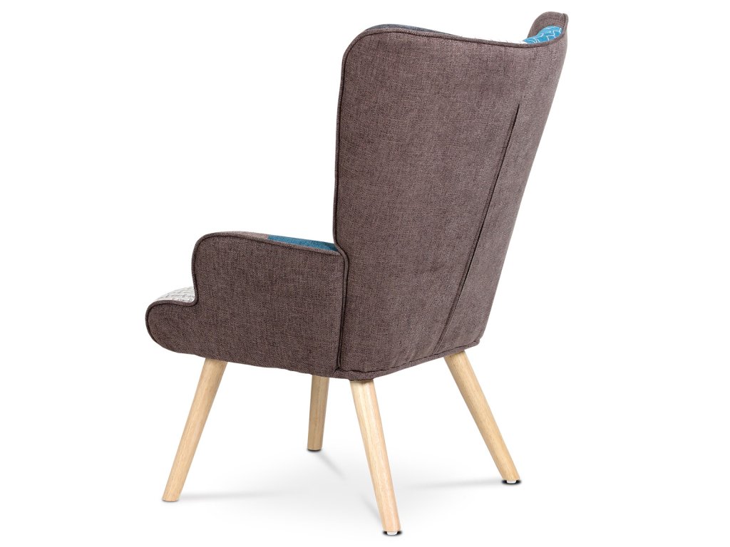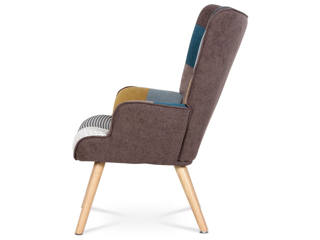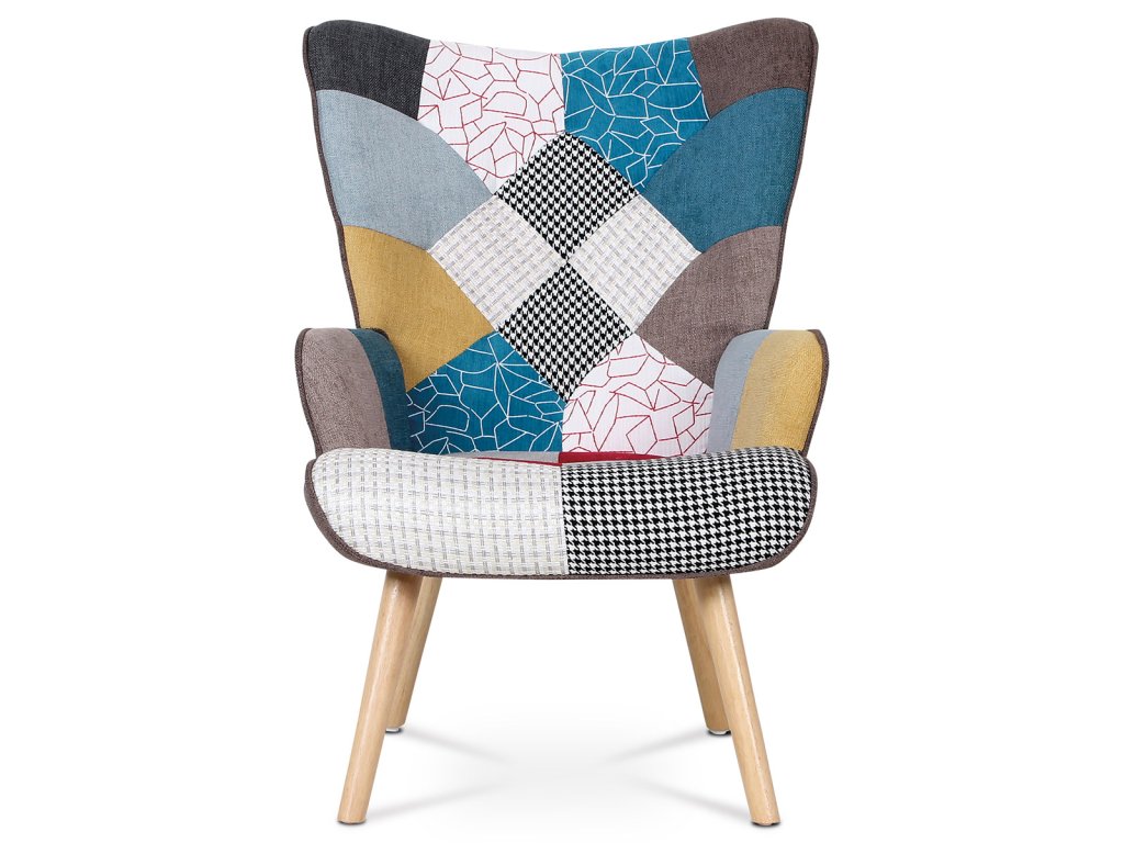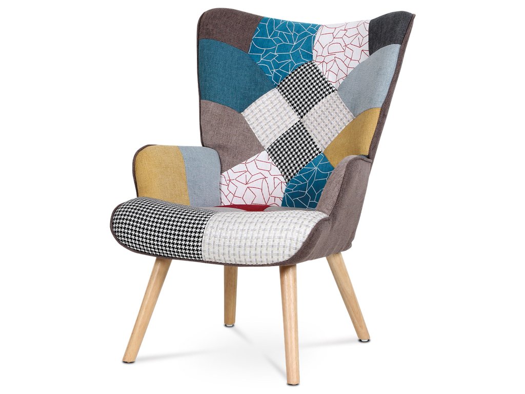 Křeslo "ušák" s podnožkou, potah patchwork látka, nohy masiv kaučukovník AK-305 PW2 - Křeslo ušák s podnožkou vyniká výrazným patchwork potahem z kvalitní látky, který kombinuje vícebarevné vzory a dodává interiéru osobitý charakter. Masivní nohy z kaučukovníku zajišťují stabilitu a dlouhou životnost, přičemž jejich přírodní odstín ladí s barevností čalounění. Ergonomicky tvarované opěradlo s vysokými bočními křídly poskytuje pohodlnou oporu pro záda i hlavu, což podporuje relaxaci. Součástí je také samostatný taburet s odpovídajícím designem, který umožňuje pohodlné podložení nohou. Křeslo je určeno pro použití v obývacích pokojích či relaxačních zónách, kde oceníte kombinaci komfortu a stylového provedení.Doplňkové parametry