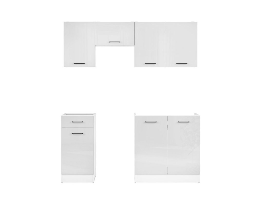 Kuchyňská linka Junona Modul verze2 BBL TAFLA 170 cm, bílá/světle šedý lesk s celkovou šířkou kuchyně, která činí 170 cm se skvěle hodí do menších bytů či malé kuchyně. Zároveň ale nabízí všechny nejdůležitější skříňky jako dřezovou skříňku, skřínku na odsavač i šuplík na příbory.