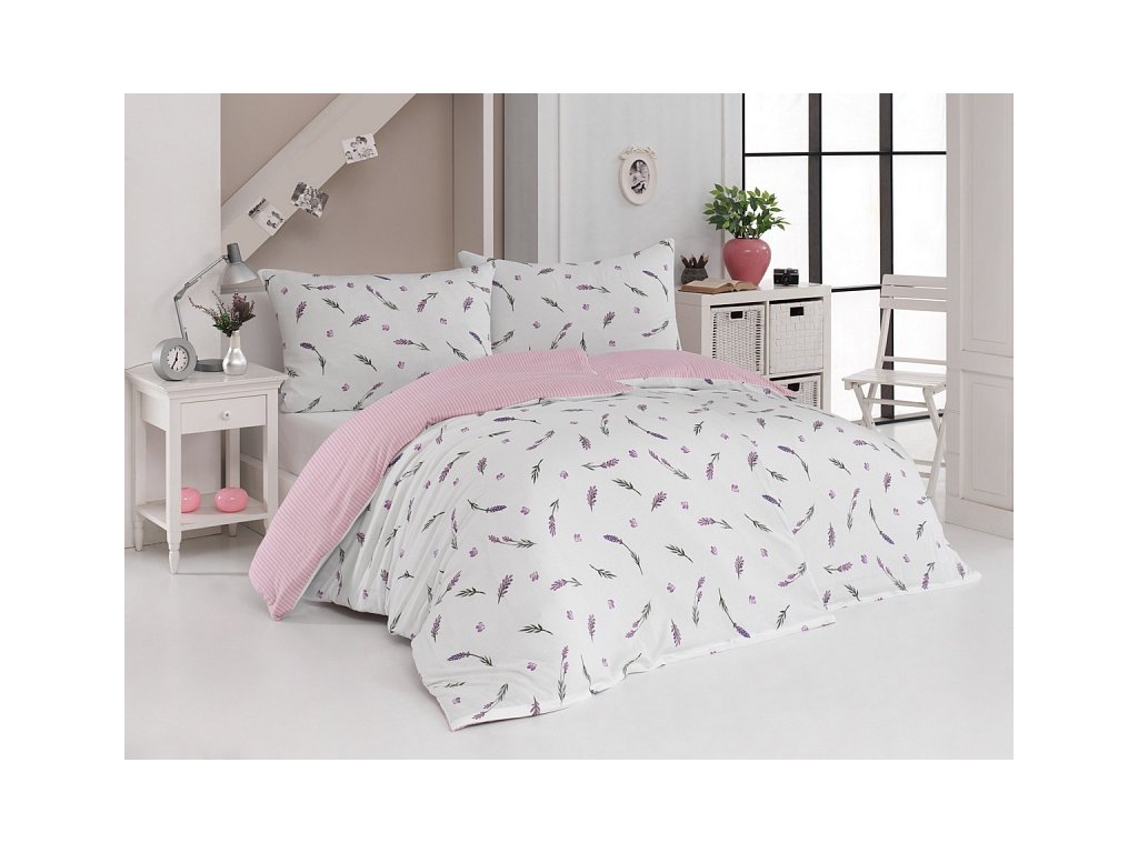 Lavender Bavlna deluxe 1x 140/200, 1x 70/90 - Oblíbený motiv levandule ve spojení s elegantním proužkem přináší ložní povlečení Lavander. Vrchní stranu povlečení zdobí levandulové snítky na bílém podkladu, spodní stranu tvoří pastelově růžový podklad protnutý jemnými bílými proužky. Povlečení Mako jersey vás nadchne jedinečnou hebkostí a snadnou údržbou. Látka je vyrobena z pečlivě vybraných přízí 100% egyptské bavlny, je prodyšná a velmi dobře absorbuje vlhkost. Výhodou tohoto materiálu je, že při správné údržbě nevyžaduje žehlení. Povlečení je opatřeno komfortním zipovým uzávěrem. U povlečení v materiálovém provedení Mako jersey neprovádíme úpravy rozměrů.Doplňkové parametry