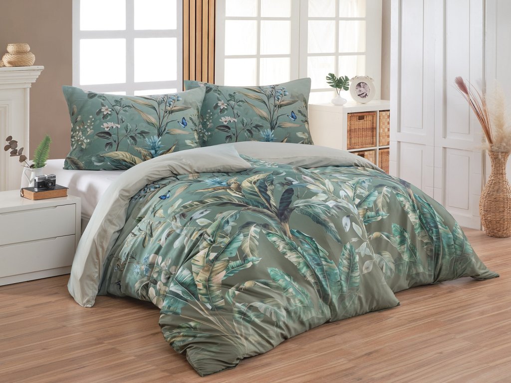 Lilo Bavlněný satén Digitál1x 140/200, 1x 70/90 - Saténové povlečení Lilo vnese do vaší ložnice nádech exotiky. Přírodní florální motiv v paletě zelených a tlumených modrých tónů působí energicky a zpříjemní vám každodenní vstávání. Díky nejmodernějšímu digitálnímu tisku si vychutnáte každý detail tohoto jedinečného přírodního vzoru. Materiál: 100% bavlna Povlak na přikrývku je z obou stran stejný. Povlak na polštář zachycuje z každé strany jiný květinový motiv a vrchní stranu povlaku zdobí malé logo "M" v pravém dolním rohu. Povlečení je opatřeno komfortním zipovým uzávěrem. bonieDoplňkové parametry