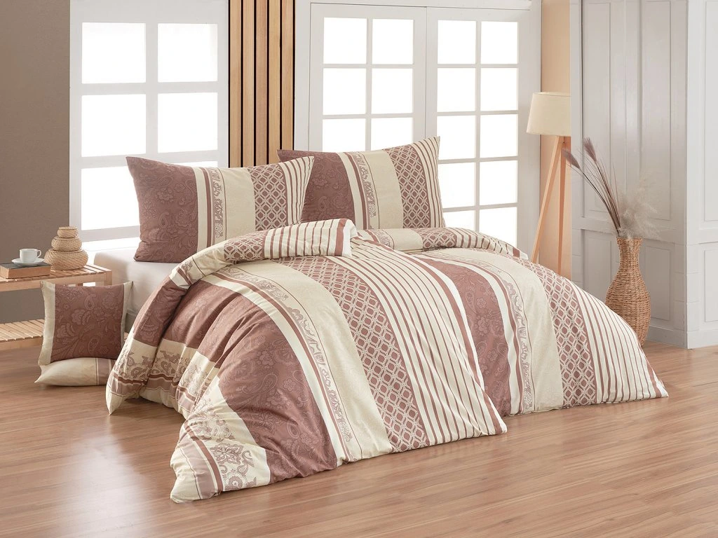 Linda Bavlna deluxe 1x 140/220, 1x 70/90 - Povlečení Linda Dopřejte své ložnici harmonii a nadčasovou eleganci s bavlněným povlečením Linda. Povlečení v jemné kombinaci béžových a hnědých tónů působí klidně a hřejivě, zatímco kombinace pruhů a decentních ornamentálních vzorů dodává celku zajímavou dynamiku. Materiál: 100% bavlna Povlak na polštář i na přikrývku je z obou stran stejný, vrchní stranu povlaku na polštář zdobí malé logo "M" v pravém dolním rohu. Povlečení je opatřeno komfortním zipovým uzávěrem. Povlaky na polštářky 40/40 cm se šijí ze stejné látky jako ložní povlečení, vzhledem k rozmanitosti vzoru může být každý povláček jiný.Doplňkové parametry
