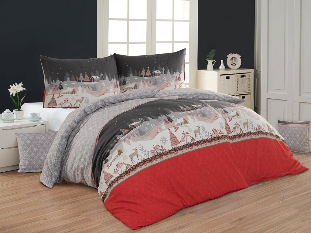 Magnus Flanel premium 1x 140/200, 1x 70/90 - Materiál: 100% bavlna Povlak na přikrývku je z obou stran stejný. Povlak na polštář zachycuje na spodní straně zimní dekorativní vzor z poloviny na šedém a z poloviny na červeném podkladu, vrchní strana polštáře odpovídá vyobrazení na fotografii a v pravém dolním rohu je umístěno malé logo "M". Povlečení je opatřeno komfortním zipovým uzávěrem.Doplňkové parametry