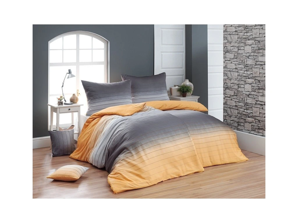Melina Gold Bavlněný satén 1x 140/200, 1x 70/90 - Hledáte povlečení v jemném designu? Vzor Melina Gold kombinuje tóny šédé a hřejivé medově žluté. Decentní proužek s ombré efektem dodává povlečení elegantní vzhled. Povlak na polštář i příkrývku je z obou stran stejný. Povlečení Melina Gold nabízíme v provedení bavlna deluxe a krep deluxe.Doplňkové parametry