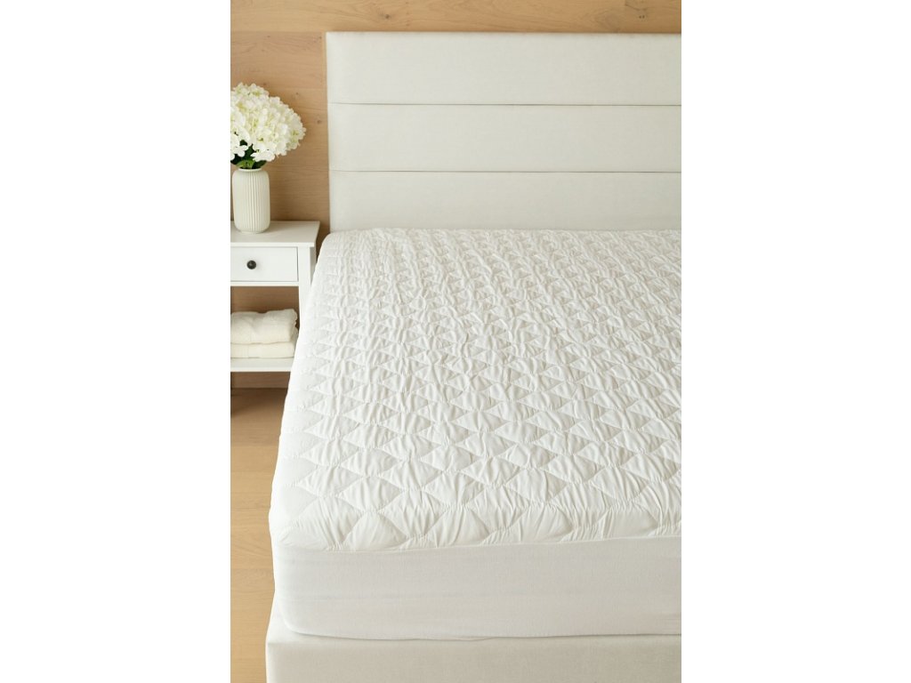 Napínací matracový chránič PREMIUM NEPROPUSTNÝ bílá 100x220 - Napínací matracový chránič PREMIUM s nepropustnou úpravou ochrání vaši matraci a přispívá k doplnění komfortu vašeho spánku. Použitím chrániče zabráníte ušpinění či poškození matrace a prodloužíte tak její životnost. Díky nepropustné vrstvě na spodní straně podložky zamezí chránič průniku tekutin. Provedení: prošívaná podložka vyplněná silikonizovaným dutým vláknem s bočním pružným úpletem, podložka je opatřená nepropustným zátěrem Vlastnosti: chránič je pevný a částečně prodyšný, prošití po celé ploše zajišťuje dobrou stabilitu výplně a díky pružné látce na bocích perfektně drží na matraci Povrch: prošívaná podložka - 100% polyester, broušené mikrovlákno s hebkým povrchem, nepropustná vrstva 100% polyuretan boční látka - směs bavlny a polyesteru s gramáží 125 g/m2, výška boků až 40 cm Náplň: silikonizované duté vlákno (120 g/m2) Údržba: Matracové chrániče je možné prát při teplotě 60°C s šetrným pracím prostředkem. Po vyprání ined vyjměte z pračky a pověste. Nežehlete, nebělte a nesušte v sušičce. Při slabším znečištění doporučujeme praní při teplotě 40°C, prodloužíte tak životnost matracového chrániče. Matracový chránič není náhražkou prostěradla, doporučujeme kombinovat s napínacími prostěradly.Doplňkové parametry