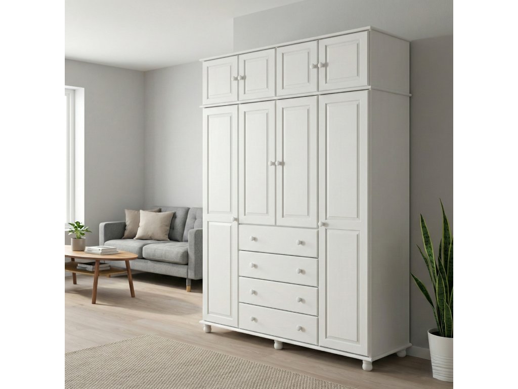 Nástavec 4dveřový 8853B bílý lak - materiál masiv borovice, barevné provedení bílý lak nástavec pro skříň 8852BBuďte první, kdo napíše příspěvek k této položce.