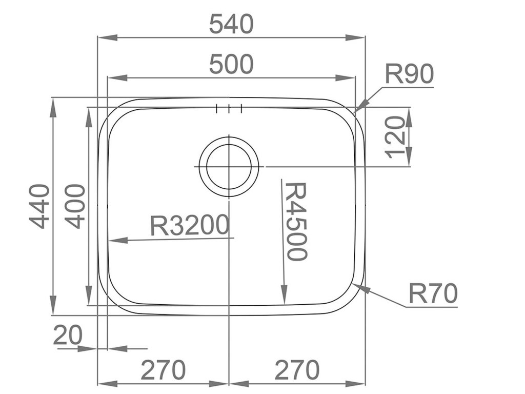 Nerezový jednodřez BELÉM 540 V 0,8mm leštěný s velkou výpustí.