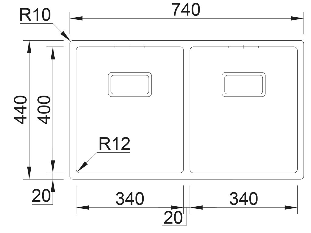 Nerezový dřez BOX 740 DUO FI 1,0mm