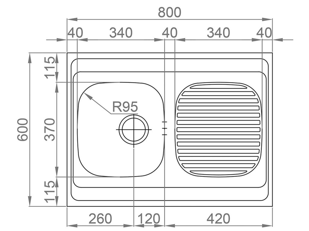 Nerezový celoplošný dřez s odkapem CLP-A 800 M 0,5mm matný s malou výpustí.