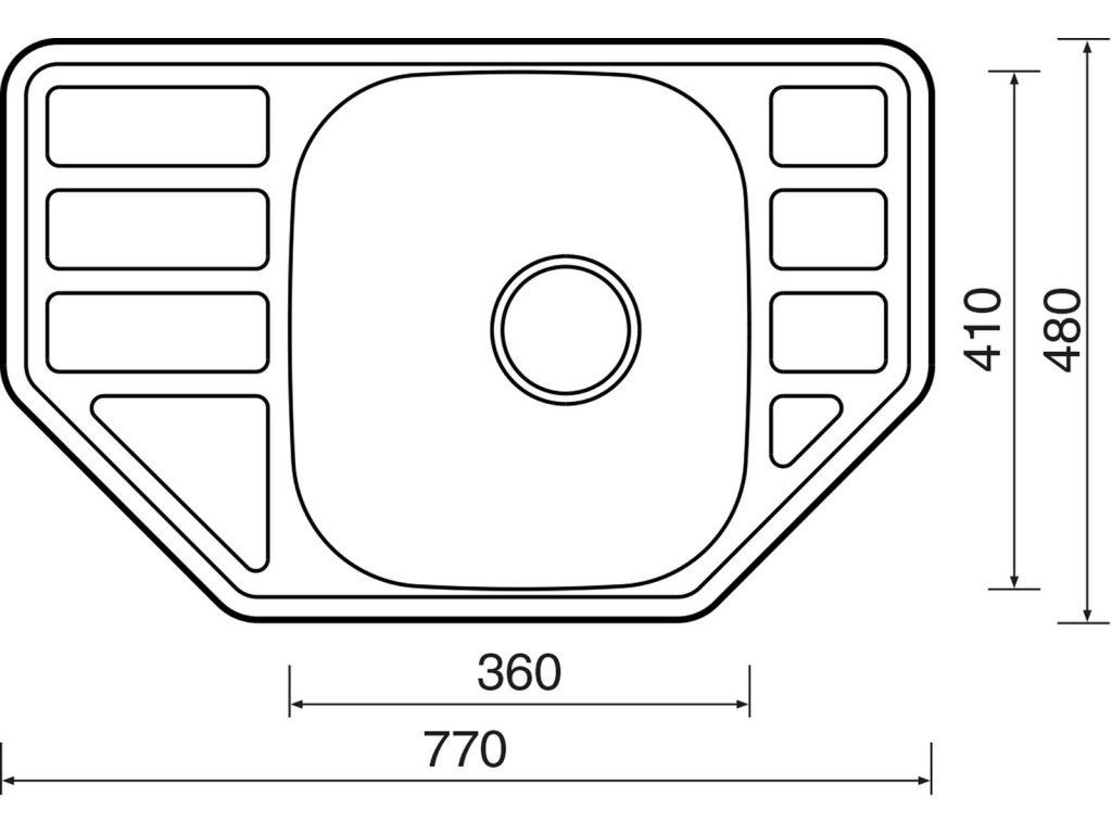 • Rozměr dřezu 770 x 480 mm