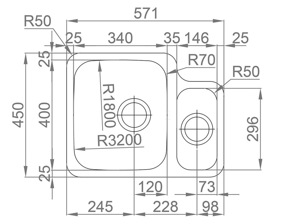 - Rozměr dřezu 571 x 450 mm