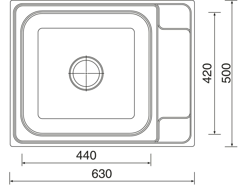Nerezový dřez GRAND 630 V 0,7mm matný